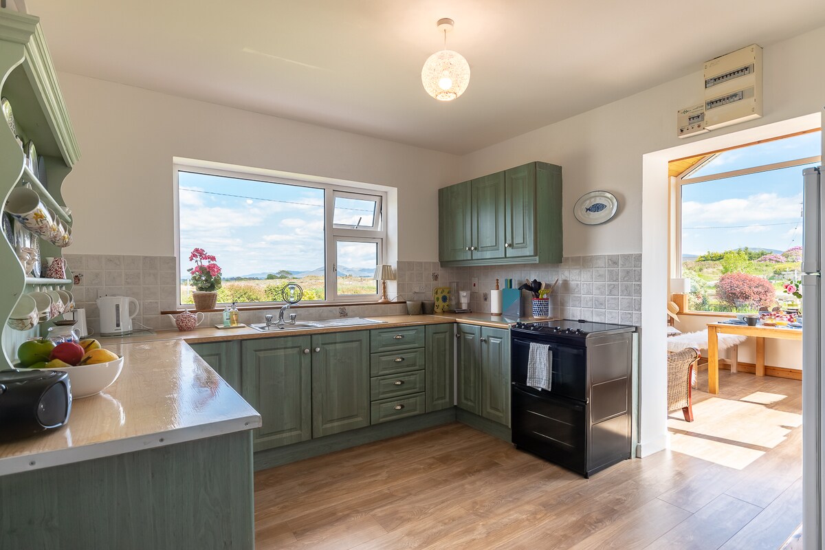 Tranquil Cottage on the ring of Kerry and the Wild Atlantic Way, with spectacular views. the Cottage has recently refurbished. May maluwang at kumpletong kusina, na may dishwasher, washing machine, refrigerator,electric cooker na may oven. Sa tabi ng kusina ay may silid - araw/silid - kainan na nakatanaw sa mga tanawin ng bundok sa paligid. ang banyo ay bagong inayos na may maluwang na shower, toilet at wash hand basin. may 2 silid - tulugan. isang doube, isang kambal. Maaliwalas na silid - upuan.
