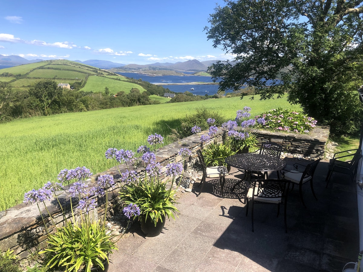 Naghahanap ka ba ng tahimik at hindi pa nasasalang lugar? Lumayo sa karamihan ng tao dito sa Beara peninsula. Mag-enjoy sa privacy at ginhawa sa isang maginhawang handmade na bahay na gawa sa bato, na itinayo noong 1830s, na nakakabit sa aming tahanan ng pamilya. 25 minutong biyahe mula sa magandang bayan ng Kenmare, na sikat sa mga restawran at pamana. Mabilis na wifi. Tunay na apoy mula sa kahoy (at tulong sa pag-aapoy nito, kung kinakailangan) Komportableng couch kung saan puwede kang magpahinga! May almusal. May mga pangunahing kagamitan sa pagluluto. Magagandang lokal na restawran. Walang pag - check in sa gabi.