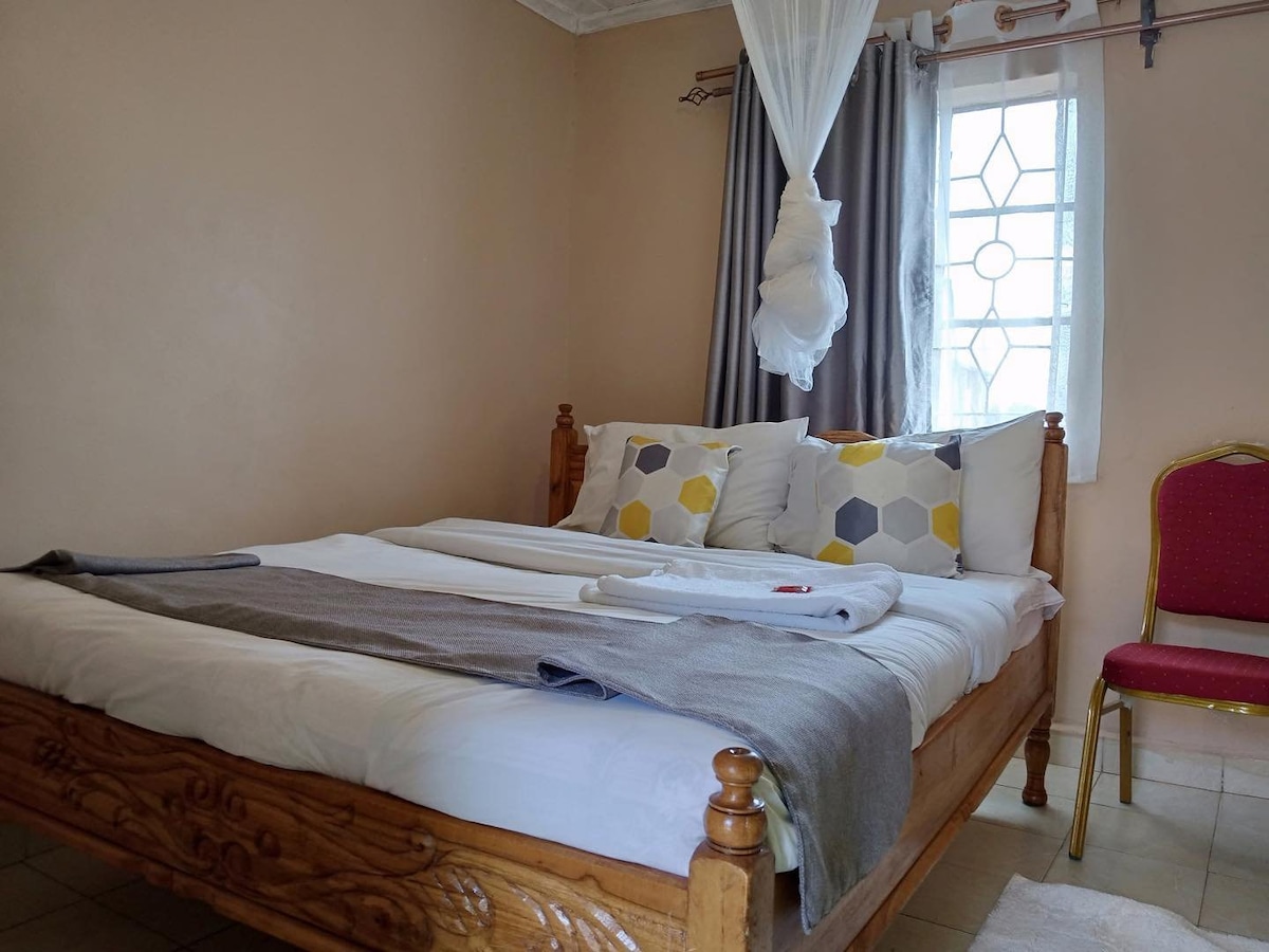 Magandang kuwarto sa isang Bed and Breakfast , lahat ng en - suite na bahay na matatagpuan sa tahimik na suburb ng Milimani, Kitale. Limang minutong biyahe ito papunta sa pangunahing sentro ng lungsod at malapit ito sa Kitale Club. May tagapag - alaga sa lugar para mag - alok ng pang - araw - araw na paglilinis pati na rin ng 24 na oras na seguridad para sa compound. Available ang chef kapag hiniling..