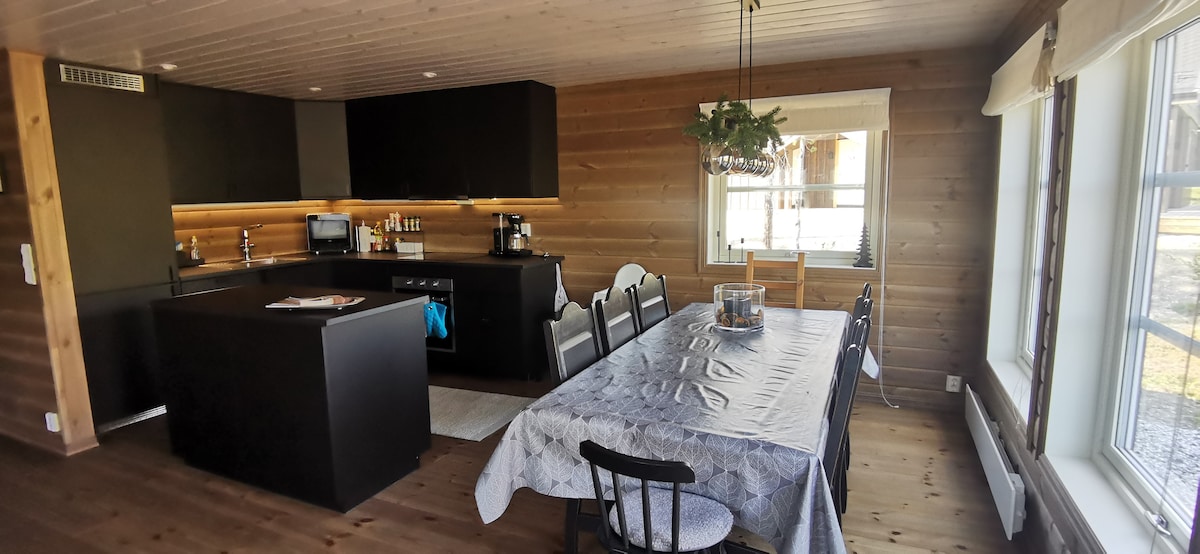 Isang maginhawang cabin na may magandang mountain atmosphere at malalaking bintana na may magandang tanawin na nag-aanyaya sa iyo para sa magagandang araw sa bundok. Ang cabin ay matatagpuan sa gitna ng magandang hiking terrain kung saan may ski in/out sa isang malaking inihanda na network ng mga track para sa cross-country skiing, bilang karagdagan sa 20 minutong layo sa ski center. Malaking maaraw na terrace na may recessed jacuzzi kung saan maaari mong tamasahin ang araw buong araw.