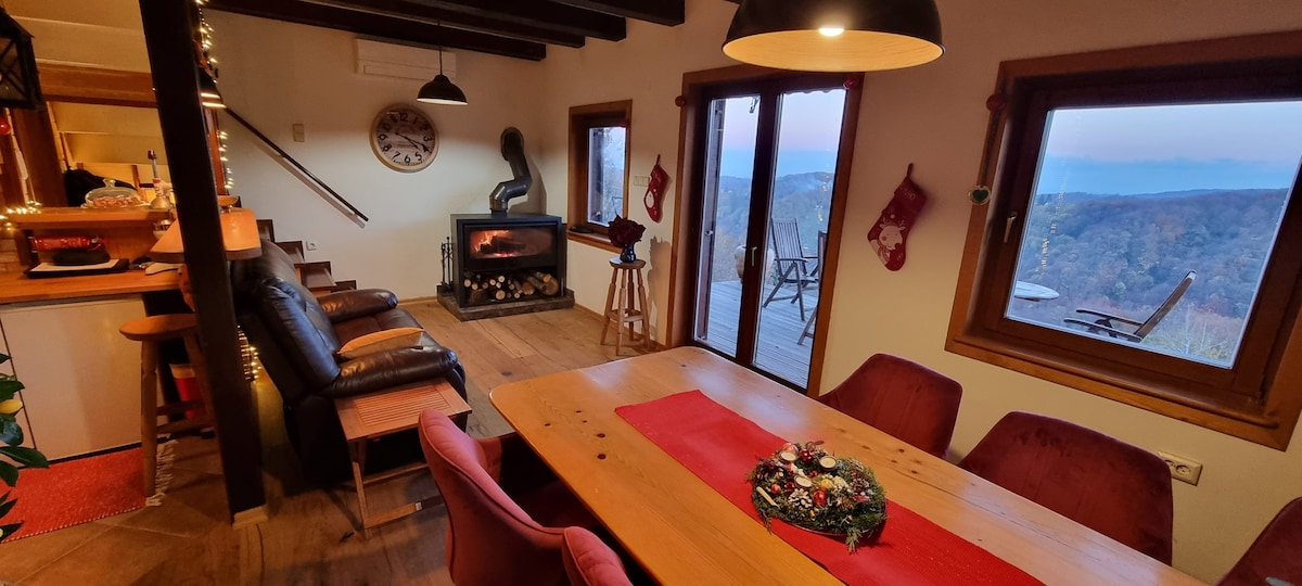 Nag - aalok ang komportable at komportableng cottage ng moderno at kumpletong kusina. Sa hardin ay may hot tub, sauna, fireplace, at BBQ, kung saan puwede kang maghanda ng pagkain at mag - enjoy sa mga di - malilimutang sunset. Ang kaakit - akit na interior ng cottage ay isang kumbinasyon ng kahoy, salamin at bato. Ang retreat sa cottage na Sončni Grič na niyayakap ng mga ubasan, kagubatan at mga warbling na ibon ay mag - uugnay sa iyo sa kalikasan at sa kanyang mga kakayahan sa pagpapagaling. Matatagpuan ang Sončni Grič, isang hakbang lang ang layo mula sa highway exit Trebnje East.