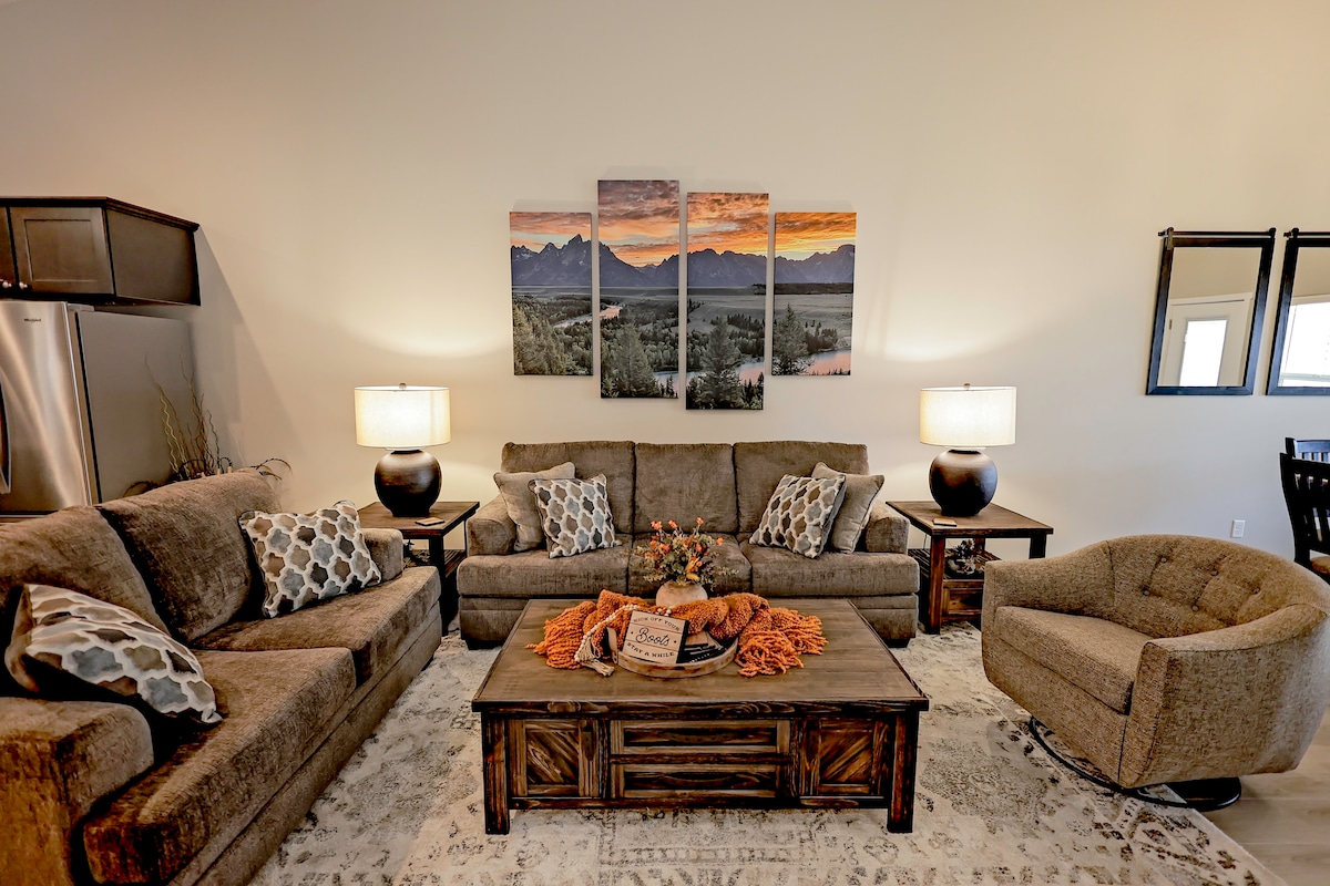 Matatagpuan sa loob ng prestihiyosong kapitbahayan ng Settler's Ridge ang modernong guest suite na ito na nag - aalok ng sentral na tuluyan na malayo sa tahanan sa magandang Twin Falls. Nagtatampok ang suite ng bukas na plano na nakatira sa lahat ng kailangan mo para sa nakakarelaks na pamamalagi. May kitchenette, chic dining space, sparkling bathroom, lounge area na may opsyon na sofa bed at kuwarto na may marangyang king bed. Nasa pintuan mo ang sikat na Snake River Canyon at ilang minuto lang ang layo ng mahusay na pamimili at kainan.