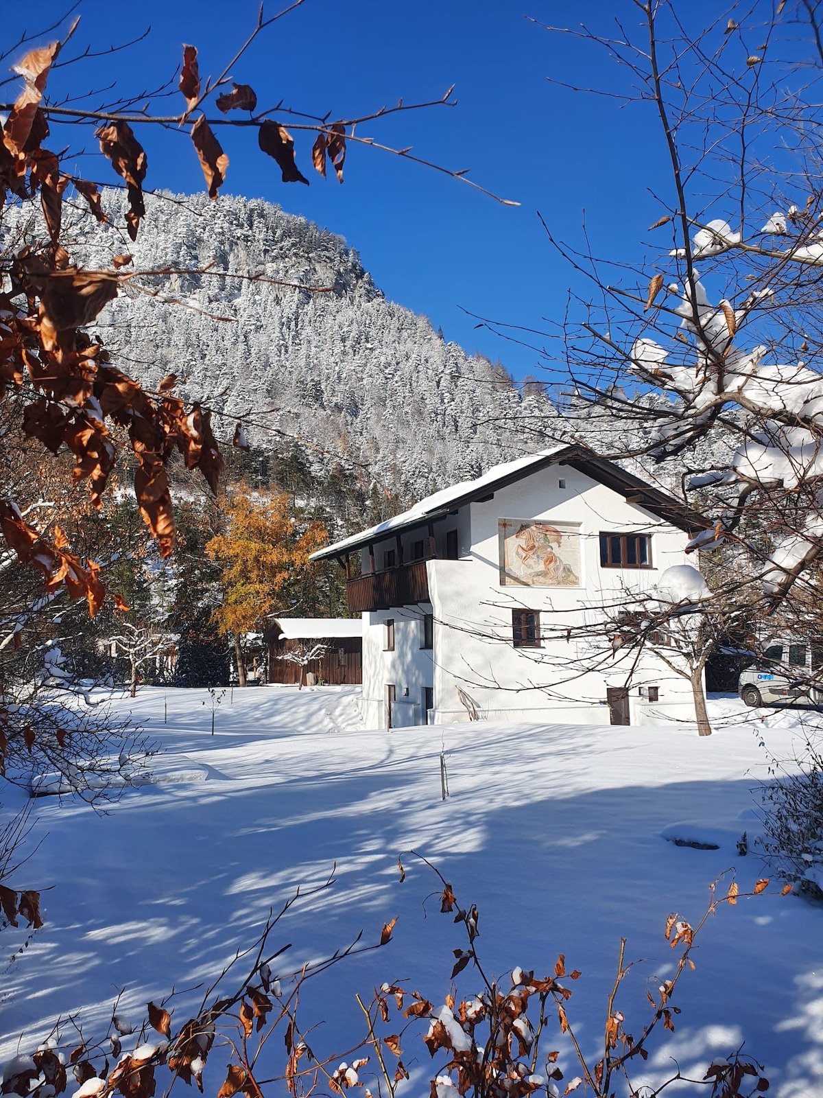 Sa tahimik na sentro ng nayon ng Haiming, mayroon kaming mga magiliw na kasangkapan sa ika -1 palapag ng aming malaki at mas lumang bahay, silid - kainan, kusina, banyo, toilet na may available sa amin. Sa pasukan ng Ötztal, madali kaming mapupuntahan sa pamamagitan ng tren o bus (mga 10 o 3 minuto) at kotse (P sa bahay) at konektado sa Innsbruck at lahat ng aktibidad sa paglilibang sa rehiyong ito. Malapit na ang tindahan ng mga magsasaka, panaderya, butcher, 5 minuto ang layo mula sa "MiniEKZ" sa nayon.