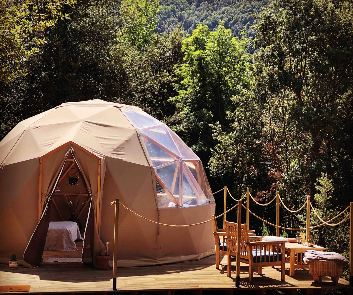 Mamalagi sa isang tunay na glamping, na matatagpuan sa protektadong lugar ng isang teritoryo na may hindi mabibiling likas na halaga. Layunin naming mag - alok ng tunay na karanasan: hindi namin nilimitahan ang aming sarili na mag - install ng tent sa parke ng hotel o bukid at tawagin itong "glamping," gumawa kami ng tuluyan na nilagyan ng lahat ng kaginhawaan sa loob ng kagubatan ng mga oak na may edad na maraming siglo sa taas na 1100 metro, na binabawasan ang epekto sa kapaligiran na nakapaligid sa amin.
