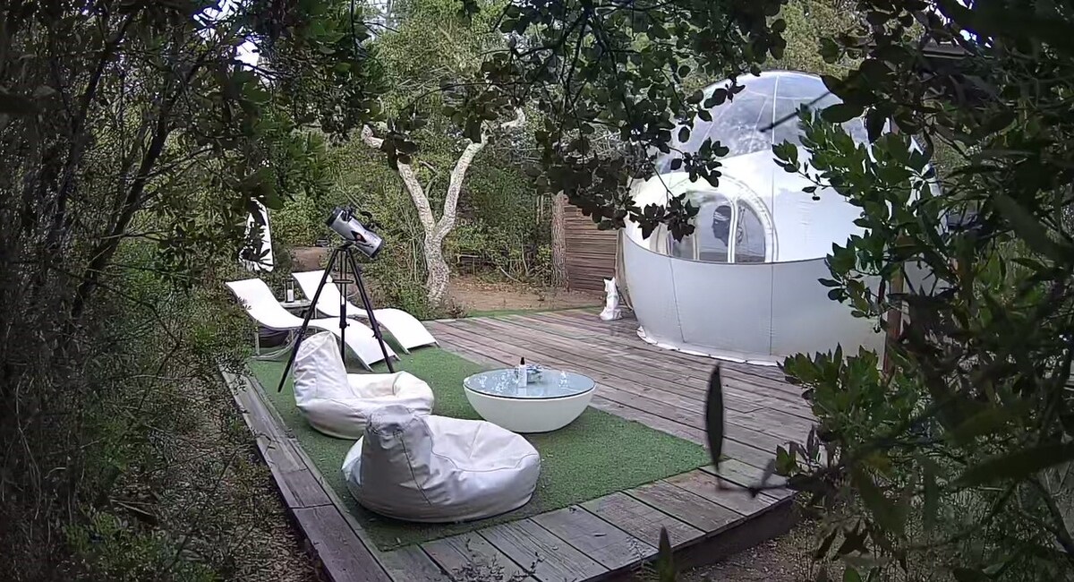 Sa guwang ng isang kagubatan, tinatanggap ka ng Bublina para sa isang pambihirang karanasan. Liblib sa pinakadakilang privacy, ang transparent na eco - brele na ito ay magiliw na nakaayos sa pinakadakilang kaginhawaan para sa isang cocooning night sa ilalim ng mga bituin. Sinamahan ng banyo nito na may transparent na bubong at malalawak na solarium, ang bawat lugar ay magbibigay - daan sa iyo upang tamasahin ang kalangitan at kalmado anumang oras. Paglubog ng araw sa isang king size bed, naka - off ang mga ilaw, hayaan ang iyong sarili na dalhin sa mga bituin.