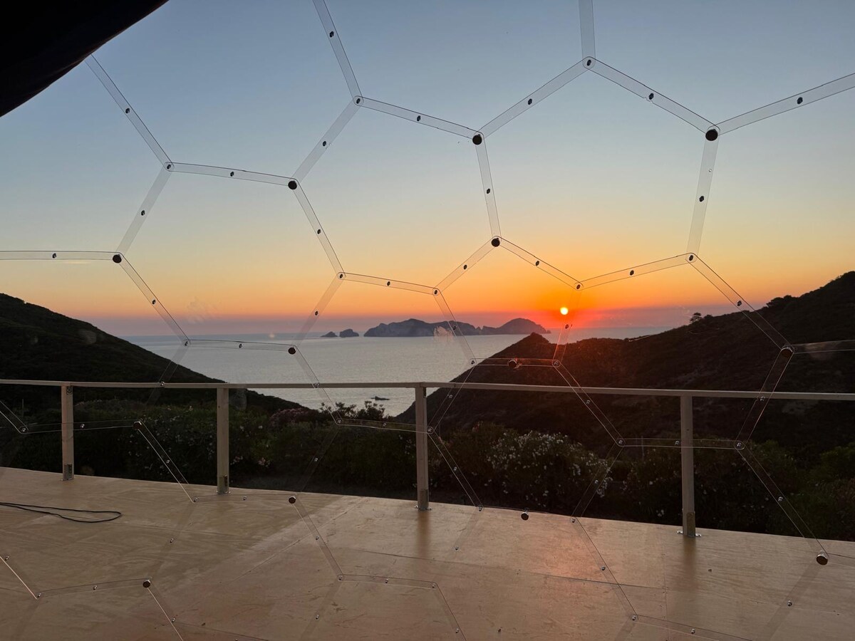 Bubble Room sa Ponza kung saan matatanaw ang Palmarola: isang natatanging karanasan sa pagitan ng kalikasan at kalangitan. Napapalibutan ng halaman, nag - aalok ito ng mga nakamamanghang paglubog ng araw at mga malamig na gabi para panoorin gamit ang teleskopyo. Matulog sa ilalim ng mga bituin nang komportable, na napapalibutan ng katahimikan ng isla at ng mahika ng kalangitan. Isang sulok ng paraiso para mangarap, makapagpahinga, at muling matuklasan ang kagandahan ng uniberso.