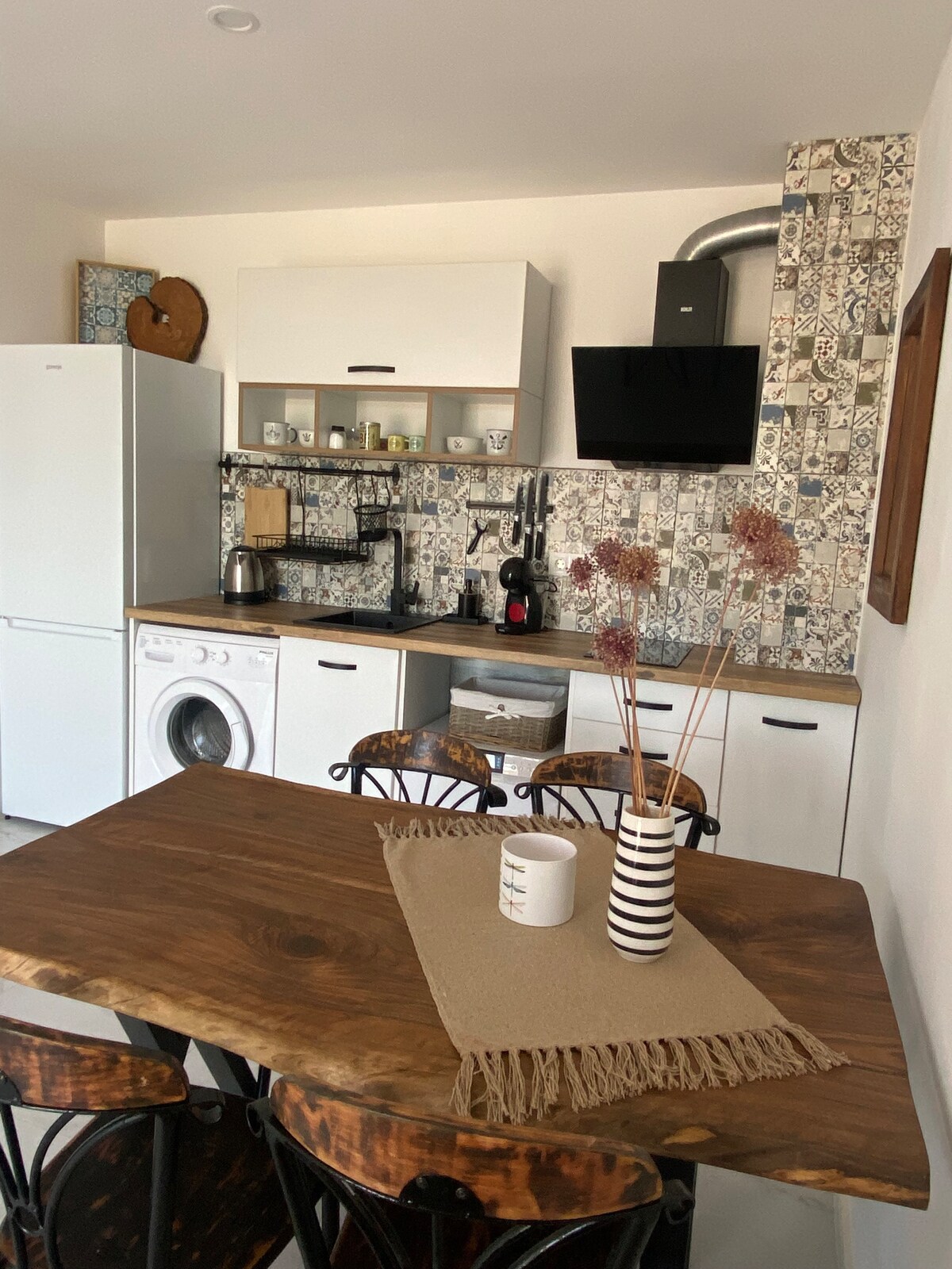 Nilagyan ang apartment na may isang kuwarto ng lahat ng kailangan mo para sa mapayapang bakasyunan sa gitna ng kalikasan. Humigit - kumulang 150m ang distansya papunta sa thenearest Butamyata beach. Ang property ay mula sa sala na may kitchenette, Clic - clac sofa ( angkop para sa dalawang bata o isang may sapat na gulang), isang pull - out armchair (na nagiging komportableng malaking single bed); isang silid - tulugan na may double bed , banyo na may ensuite at bathtub, pati na rin ang isang malaking terrace na tinatanaw ang baybayin ng dagat at Strandja; isang pool sa complex na may lahat ng dagdag na amenidad.