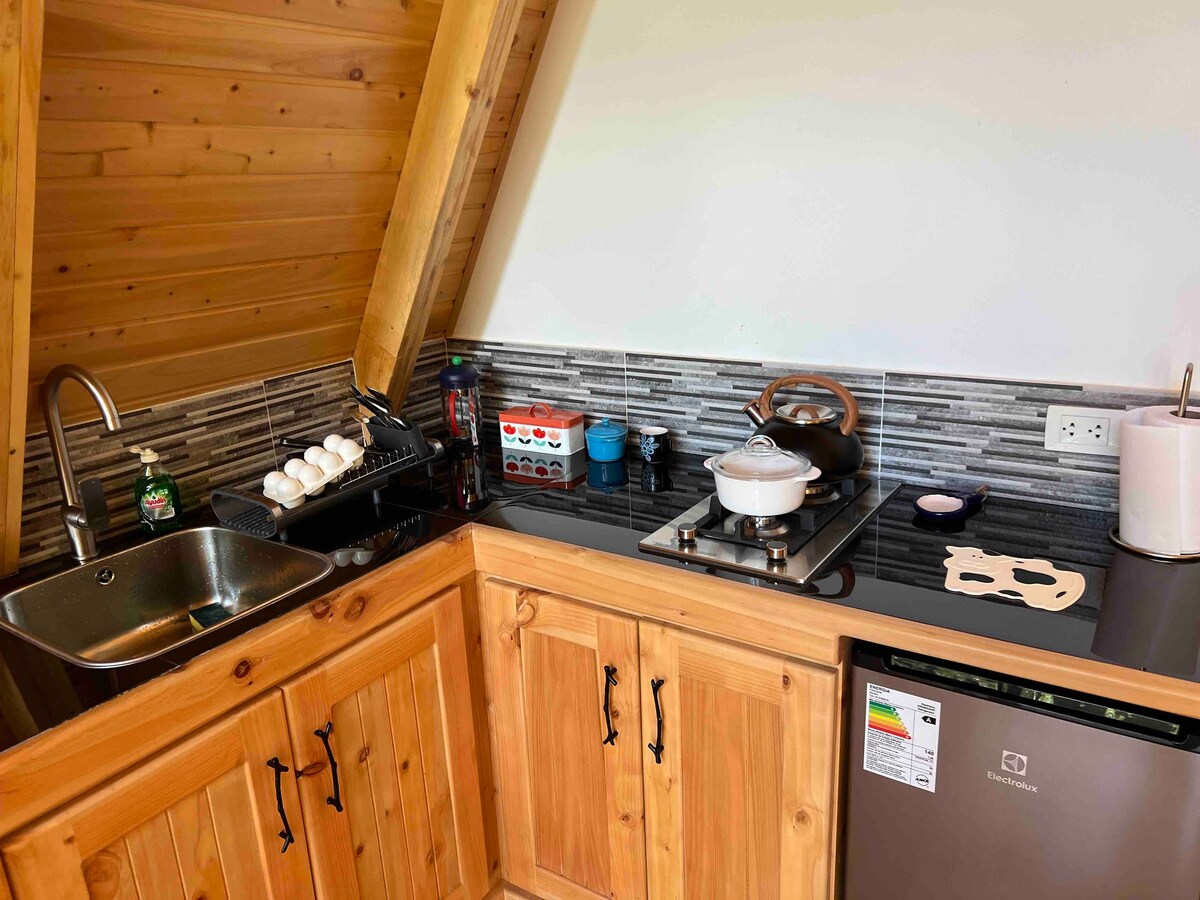 Linda cabañita para dos personas dentro del fundo 3Q. Ideal para relajarse y conectar con la naturaleza. Cuenta con Wifi satelital y caminata guiada por los bosques aledaños del Fundo.