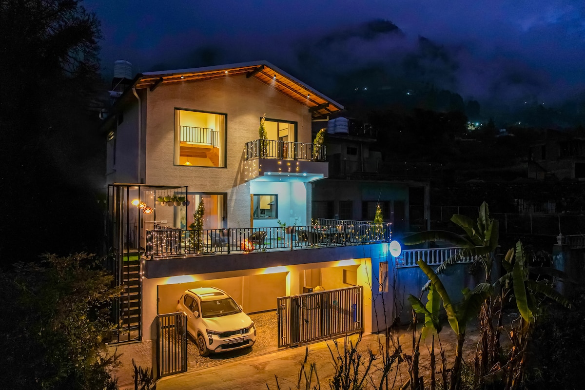 Makaranas ng modernong pamumuhay sa gitna ng Bhimtal gamit ang magandang 3 - bedroom, 1 - hall duplex villa na ito Matatagpuan sa tahimik na lambak, 500 metro lang ang layo mula sa nakamamanghang lawa at maginhawang bangka, at kalahating biyahe lang papunta sa Sikat na Kainchi Dham Temple Pinagsasama ng bagong itinayong villa na ito ang kontemporaryong disenyo at kaginhawaan, na nag - aalok ng naka - istilong bakasyunan na perpekto para sa mga bakasyunan ng pamilya. Nakakamangha ang tanawin ng lambak mula sa villa, na nag - aalok ng katahimikan at koneksyon sa likas na kapaligiran
