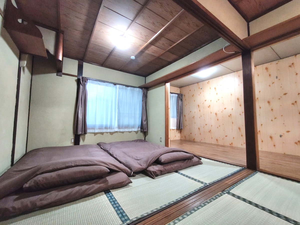 Ito ay isang maganda at purong Japanese villa na may kasaysayan ng tungkol sa★ 100 taon. May hardin na hinahawakan ng mga sikat na garden master ng Kyoto. Masisiyahan ka sa mga cherry blossom sa tagsibol at taglagas sa taglagas, at sa hardin sa buong taon. Pinapahintulutan ang Pagre - record ng Gobyerno ng ★Hotel Business Law Maginhawang ★transportasyon, 10 minutong lakad mula sa Takeda Station, 7 minuto sa pamamagitan ng tram papunta sa Kyoto Station, humigit - kumulang 10 minuto sa pamamagitan ng tren mula sa Shijo, Sanjo shopping street, at 40 minuto sa pamamagitan ng tram papunta sa Osaka at Nara.Malapit sa 24 na oras na supermarket, convenience store, restawran, at parmasya ★Ito ay isang villa na may sikat na guro sa hardin sa lugar, na may higit sa 100 square meters ng mga hardin ng Hapon, cherry blossoms, pulang dahon, puno ng plum, atbp. sa hardin, maaari mong tamasahin ang apat na panahon ng Kyoto sa villa. Maginhawang ★transportasyon 10 minutong lakad mula sa Takeda Subway Exit 5, direktang access sa Kyoto Station, Shijo, Sanjo, Nara at Osaka Station, atbp.Humigit - kumulang 7 minuto sa pamamagitan ng subway papunta sa istasyon ng Kyoto, 1 minuto sa paglalakad papunta sa platform ng bus, humigit - kumulang 15 minuto sa paglalakad papunta sa natural na hot spring, humigit - kumulang 10 minuto sa pamamagitan ng kotse mula sa Fushimi Inari Taisha, mayroong 24 na oras na supermarket, convenience store, 100 yuan supermarket, malaking Japanese restaurant, atbp., napaka - maginhawang transportasyon. ★Saklaw nito ang kabuuang lugar na humigit - kumulang 500 metro kuwadrado.Kumpleto sa kagamitan: nilagyan ng isang malaking parking lot, maaaring tumanggap ng isang malaking bilang ng mga tao, may isang semi - open - air independiyenteng banyo upang tamasahin ang courtyard, tatlong independiyenteng banyo, at isang washstand.May mga comforter, tuwalya, gamit sa banyo, bisikleta, libreng wifi, atbp. Nilagyan ang kuwarto ng mga kulambo sa tag - init, pagpainit sa sahig, mga heater, mga hot air conditioner, atbp. ★May libreng paradahan