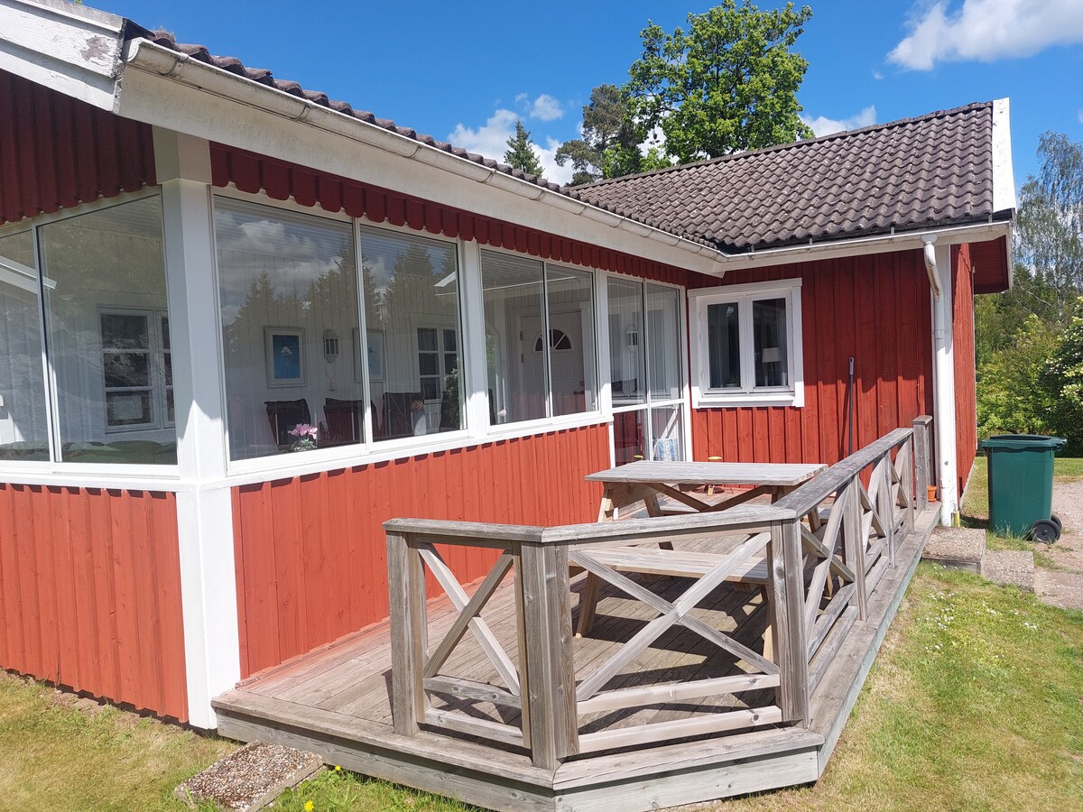 Maglaan ng de - kalidad na oras kasama ng iyong mga mahal sa buhay o sa mga kaibigan namin sa komportableng bahay na malapit sa kalikasan. Ang pinakamalapit na lungsod at tindahan ay ang Ulricehamn 12 km at pagkatapos ay mayroon kang Jönköping 38 km. Maganda at kaakit - akit ang Ulricehamn, tulad ng sa Jönköping makakahanap ka ng mga shopping at restawran. Sa taglamig, may mga oportunidad sa ski sa SkiBikeHike/Ulricehamn, Isaberg/Hestra at Mullsjö Alpin.
