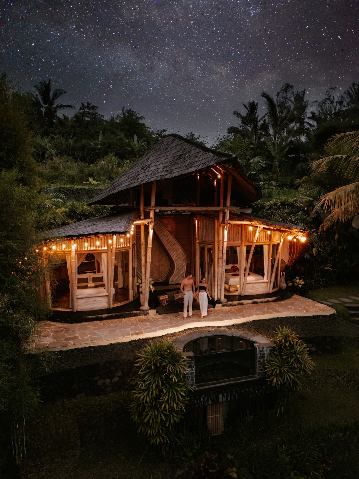 We are a very calm and chill Villa with 8 two stores bungalows around a pool area. Located in the Bukit area 5 minutes driving from Padang Padang beach, Bungalow 4 features a king size bed and a joined toilet, open kitchen floor with tv lounge, sofa bed and a main bathroom where you will shower counting the stars!! We recently installed a reverse osmosis water system that filters the usual Bali salty water giving our guests an even better experience!!