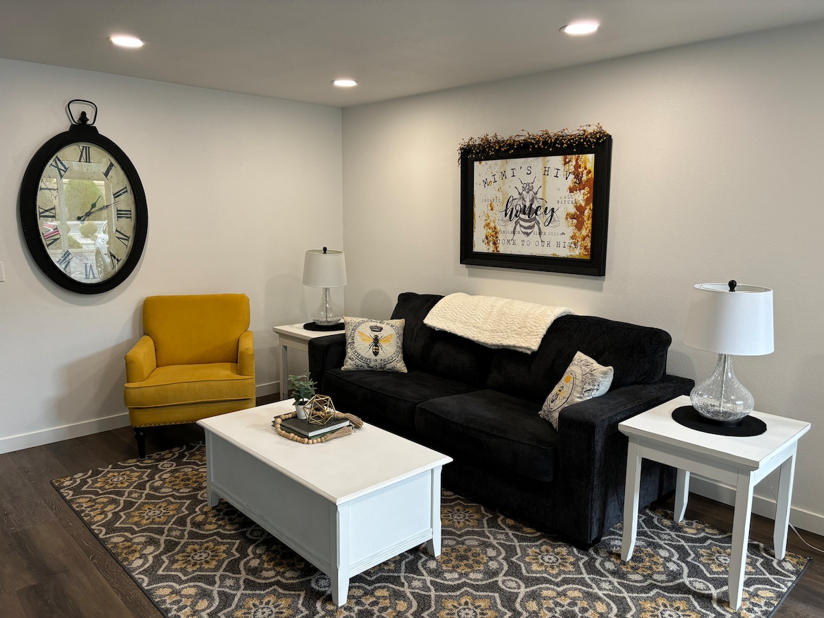 Nagtatampok ang studio ng unang palapag ng king bed at full sofa sleeper. Ang unit na ito ay may mga stainless steel na kasangkapan, quartz countertop, microwave, Keurig coffee maker, Iron, washer/dryer at on - site na paradahan. Maginhawang matatagpuan sa downtown La Grande, Eastern Oregon University at Grande Ronde Hospital.