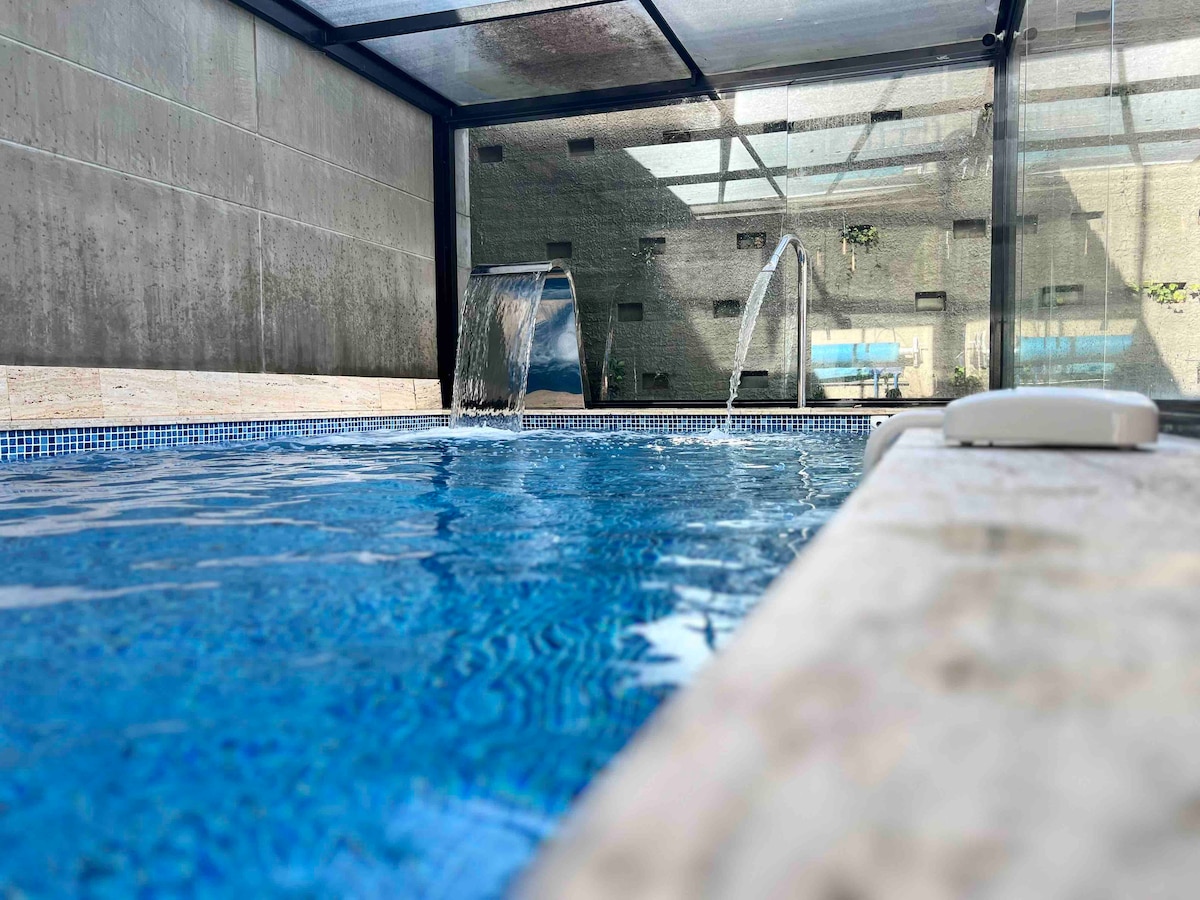 Ilang hakbang lang ang layo ng loft na ito na may dalawang palapag mula sa El Virrey Park, North Highway, at masiglang Zona Rosa. Nagtatampok ito ng: Mga bintanang mula sahig hanggang kisame Modernong kusinang kumpleto sa gamit at may dishwasher Silid‑tulugan na parang suite na may double bed at single sofa bed High - speed na Wi - Fi at Smart TV Libreng paradahan Nag - aalok ang gusali ng: Gym na kumpleto sa gamit, jacuzzi, rooftop terrace, oven at BBQ area, paliguan ng alagang hayop, outdoor cinema, coworking space, at fire pit area.