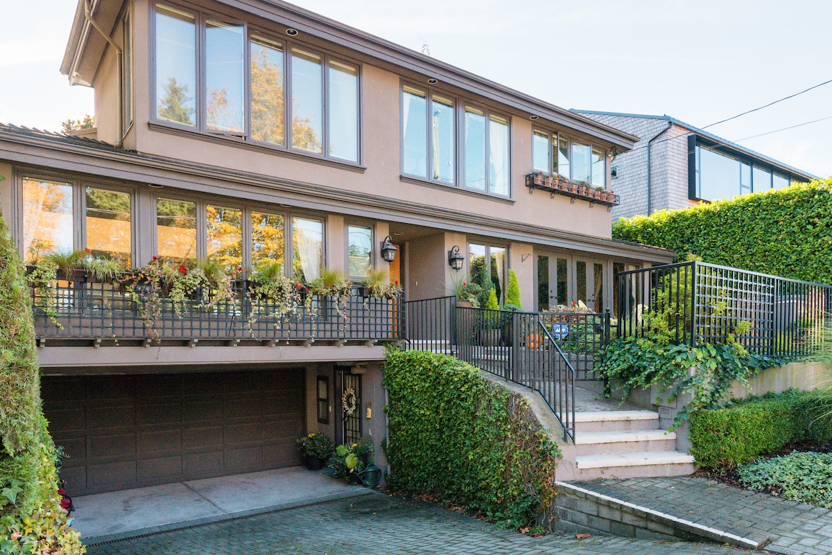 OCEANFRONT & MOUNTAIN VIEWS w/ HOT TUB & WOOD BARREL SAUNA St. Mark’s Summit Suite - best for sunrise with huge windows that provide sweeping views of West Van & Vancouver. The suite is attached to the house, but has its own exterior entrance, queen bed, bathroom with rain shower, flat screen TV & kitchenette. Sleeps 2 people. There’s no better place to enjoy a morning coffee or an evening glass of wine to soak in the views! We’re often frequented by eagles, deer & if you're lucky whales!