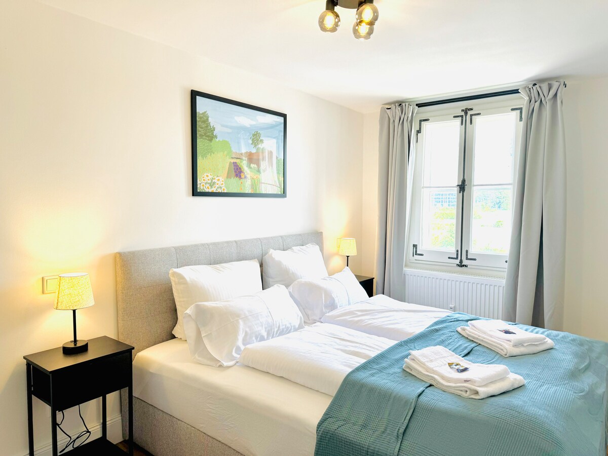 Welcome to UNiQE Apartments! This newly renovated 3-room apartment is perfect for 4 guests and features high-quality furnishings. → 1 bedroom with a comfortable box spring double bed → sofa bed available on request → bathroom with natural daylight, hairdryer, bathtub/shower → kitchen with fridge and freezer, stove, oven, and dishwasher → NESPRESSO coffee machine → Smart TV, SKY TV & free Wi-Fi → washer/dryer available for free use → within walking distance to supermarkets and restaurants
