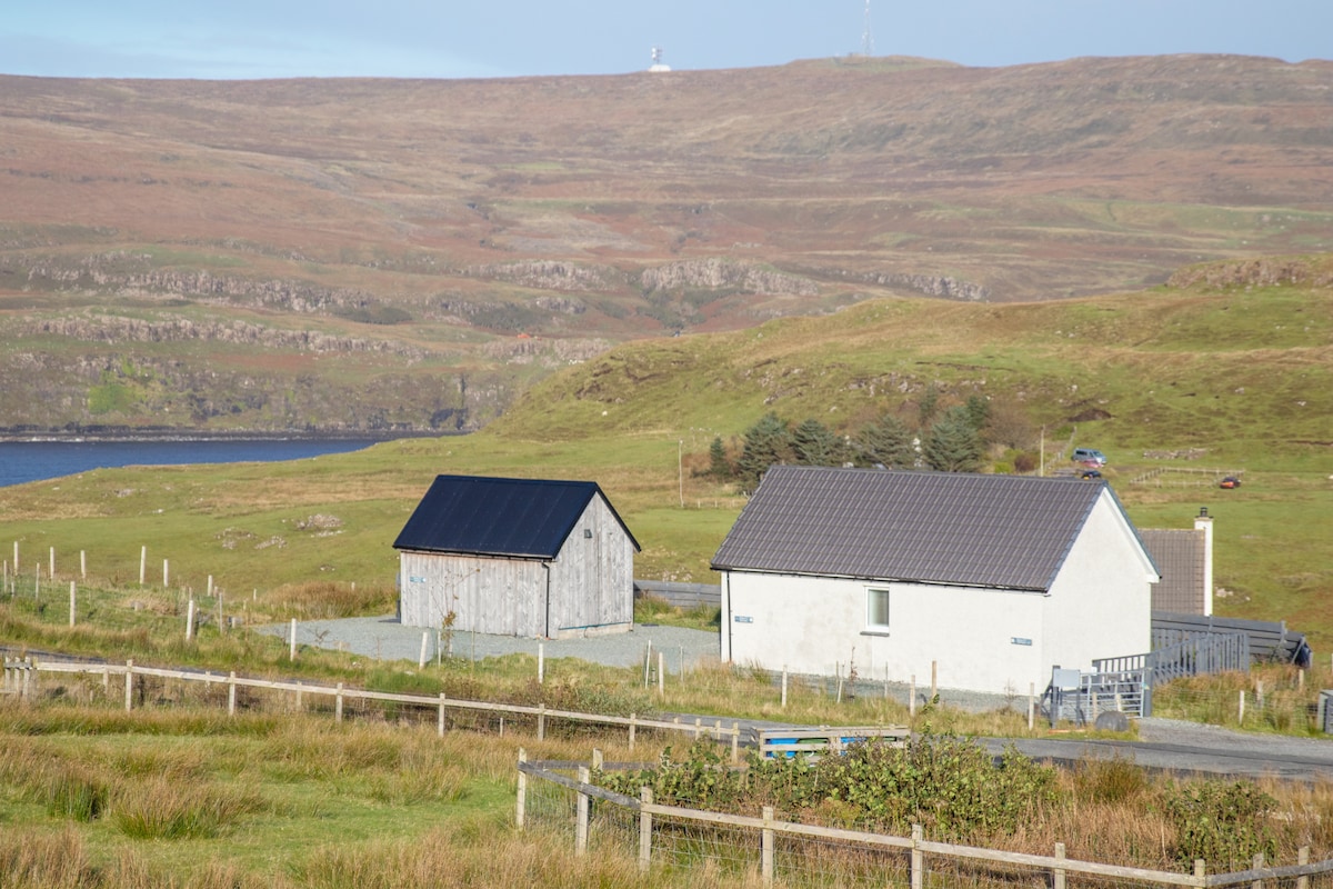 Enjoy a lovely holiday in our beautifully appointed cottage overlooking the mountains of Lewis and the waters of loch Pooltiel in the North West of Skye. Our magestic window allows you to enjoy all the moods of Skye from morning to night. The cottage is located 5 min from Neist Point, 15 min formThree Chimneys world class restaurant, 25 min from Dunvegan Castle. The perfect location for a quite yet active holiday. In the evening, relax in front of a log fire or watch the stars.