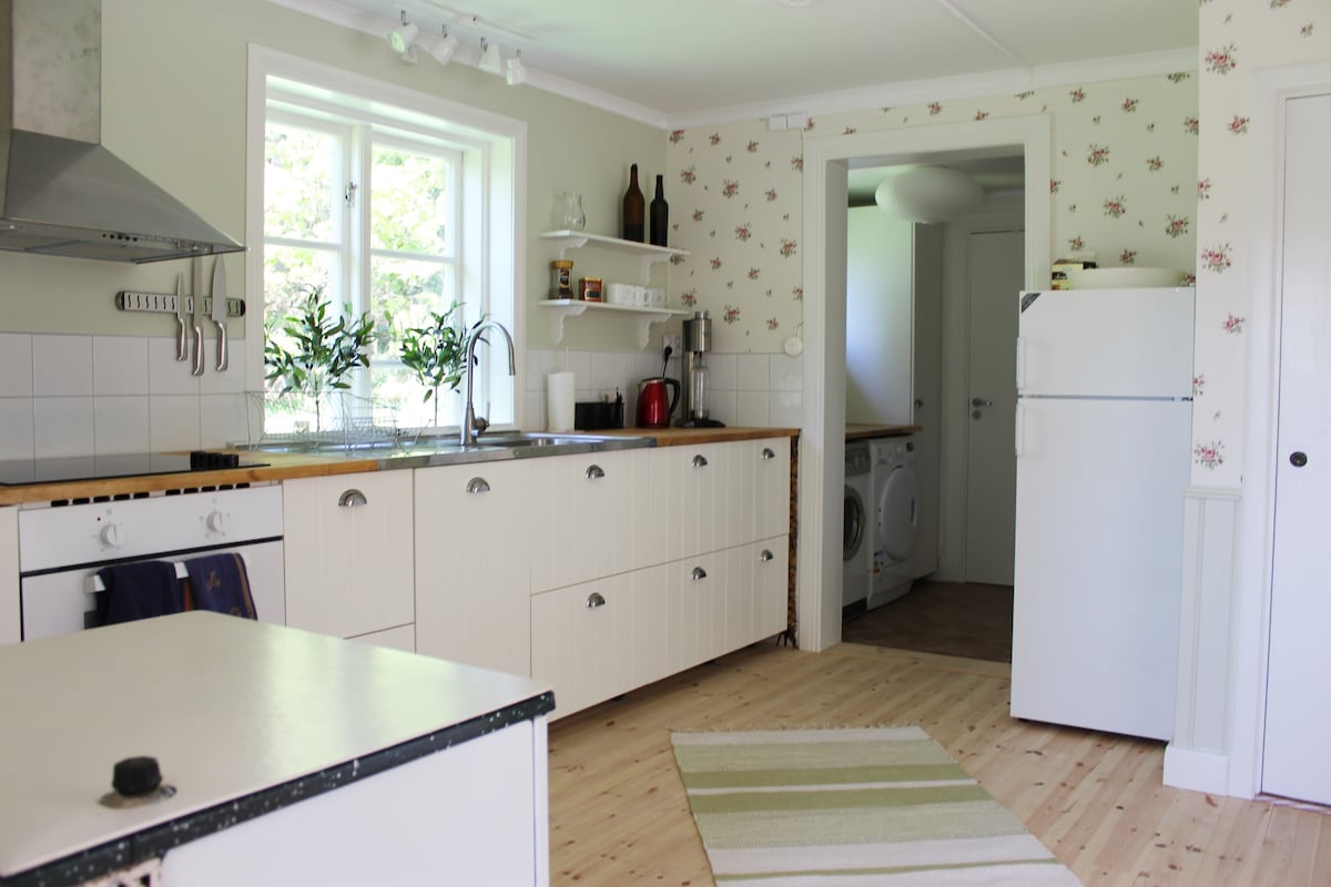 Mag-relax kasama ang buong pamilya sa tahimik na lugar na ito. Sa kalikasan na nasa paligid, maaari kang maglakad-lakad at makakita ng mga tupa at baka, at maaaring isang alce kung masuwerte ka. Magluto ng masarap na hapunan sa malaking kusina, o maglaro at manood ng pelikula nang magkakasama sa harap ng pugon. Sa pamamagitan ng kotse, maaari kang mag-excursion sa mga lokal na tindahan ng sakahan, Ekolsunds slott, Hjälstaviken at maging sa isang swimming area sa Mälaren sa loob ng 10 min. Kung nais mong sumakay ng bus papuntang Uppsala (40 min) o Enköping (15 min), ang mga ito ay direktang 230m mula sa bahay.