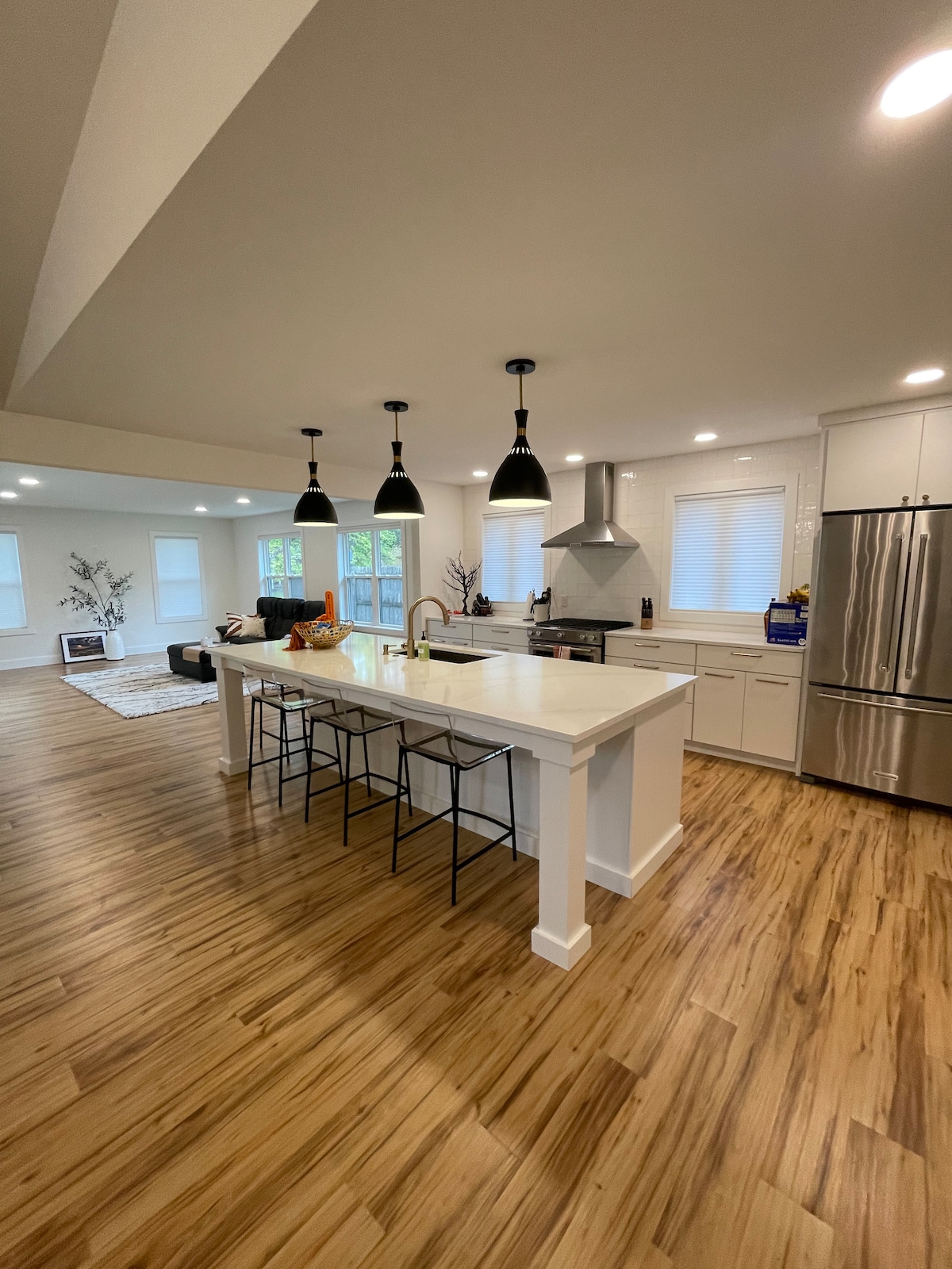 Na - update na modernong bahay na may hating antas, malapit sa University of Illinois, Memorial Stadium, State Farm Center, Research Park, magagandang restawran, mga grocery store, at ito ay isang mabilis na 5 minutong biyahe papunta sa Downtown. Ang tuluyan ay may 5 silid - tulugan at 3 banyo, na may higit sa 2800 square foot sa isang tahimik na cul - de - sac. Mainam ang tuluyan para sa mga nakakaaliw o malalaking grupo na may hating modernong pakiramdam. Maa - access ng bisita ang buong tuluyan. Nagtatampok ang tuluyan ng tatlong silid - tulugan (1 king bed at 2 queen bed), dalawang banyo, kusina, kainan at sala sa itaas na antas habang ang mas mababang antas ay may dalawa pang karagdagang silid - tulugan (2 queen bed), isang banyo, silid - labahan at isang family room na may basang bar sa loob nito. Available ang mga karagdagang queen air mattress kapag hiniling para sa anumang booking na mahigit sa 10 bisita. Nag - aalok din ang tuluyan ng Bose sound system sa buong, smart lighting, smart TV, apple TV at WiFI. Bukas sa mga bisita ang buong tuluyan. Nag - aalok ang bahay ng maraming paradahan sa driveway at sa kalye. Malapit lang ang bus at madali itong mahahanap ng Uber at Lyft. Maaari akong tawagan sa pamamagitan ng text, email o telepono. Available din ako sa karamihan ng mga oras na nasa site kung kinakailangan.
