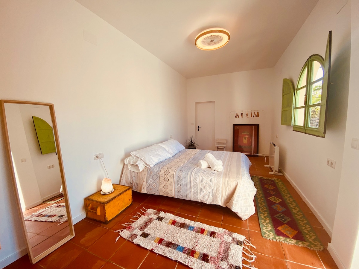 Mamalagi sa natatanging tuluyan na ito at kumuha ng hindi malilimutang souvenir. Maliit na cottage na may lahat ng kailangan mo para makagugol ng ilang araw ng pagdidiskonekta. Lahat ng inihanda at nakakondisyon para sa pamamalagi na hanggang 6 na tao. PINAINIT NA POOL!! Matatagpuan sa pribadong urbanisasyon at sa pribadong property, na may pribadong paradahan at lahat ng eksklusibong paggamit para sa mga taong namamalagi. 3 km kami mula sa Los Palacios, 46 km mula sa paliparan, at may magandang koneksyon kami sa AP4 Sevilla