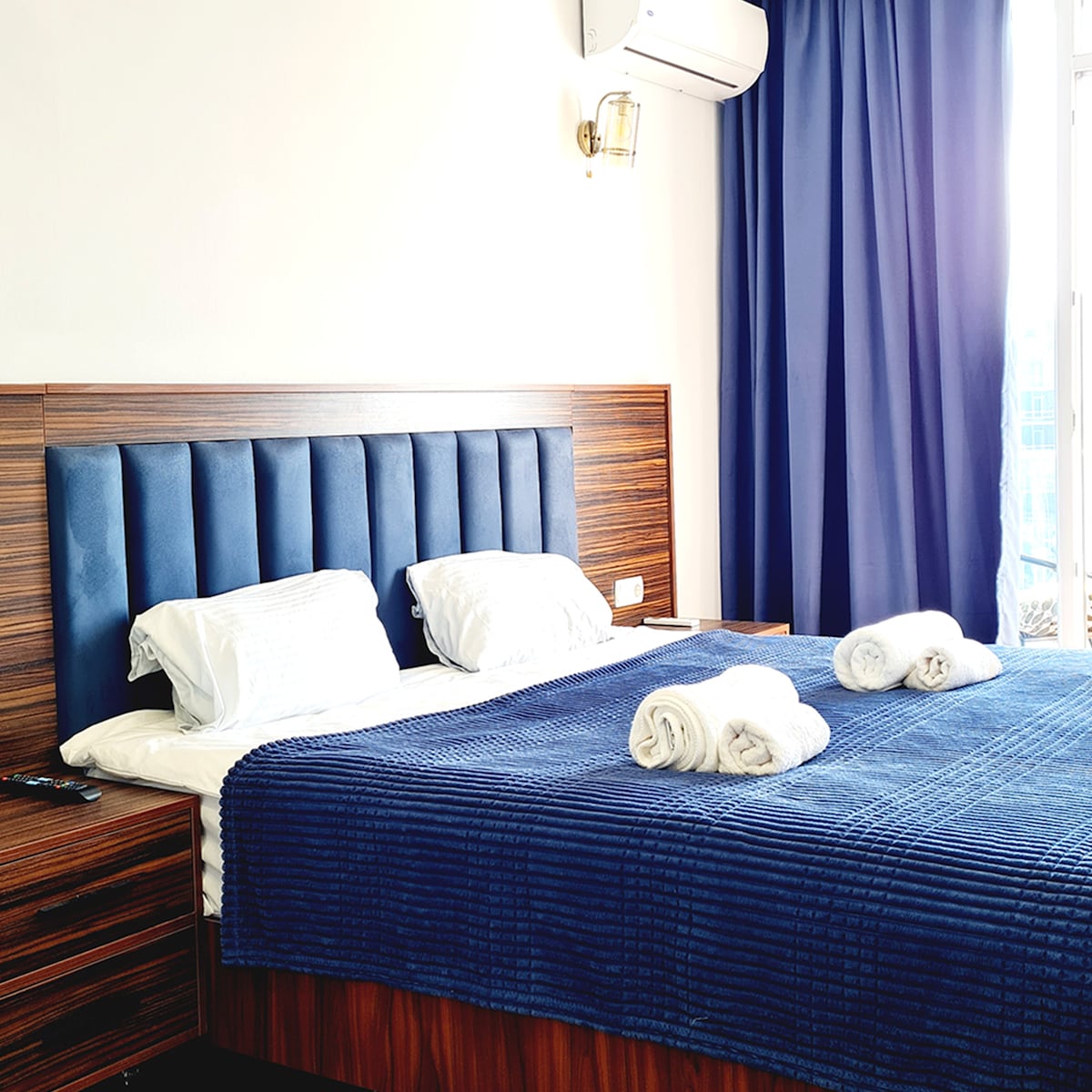 Mga maaliwalas na apartment na may mga nakamamanghang tanawin ng dagat at bundok sa ika -19 na palapag. 5 minuto lang mula sa dagat at malapit sa mga hintuan ng pampublikong transportasyon. Masiyahan sa magagandang tanawin ng dagat mula sa balkonahe. Nasa malapit ang mga supermarket, tindahan, botika, at komportableng restawran na may tunay na lutuing Georgian, pati na rin ang sikat na Batumi promenade. Nilagyan ang apartment ng mga modernong kasangkapan at lahat ng kailangan para sa komportableng pamamalagi. Available ang mga paglilipat mula sa istasyon ng tren at paliparan.
