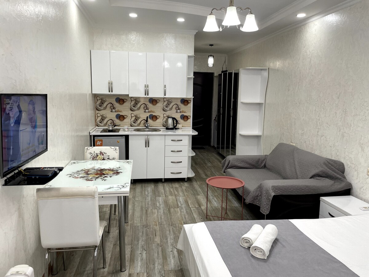 Bagong komportable at maaraw na studio apartment sa pinakamagandang bahay Next Orange resort at tourist center ng Georgia - maaraw na lungsod ng Batumi, sa tuktok na lokasyon at tatlong minuto mula sa baybayin ng dagat. Binubuo ito ng isang kuwarto, ngunit nagbibigay sa iyo ng pagkakataon na mamuhay nang ganap nang independiyente at may kinakailangang kaginhawaan. Maluwang na studio na may malaking komportableng orthopedic bed, pribadong banyo na may shower, kumpletong kusina, kumpletong kusina. Perpekto ang aking tuluyan para sa mga bisitang nagmamalasakit sa kalinisan, kaginhawaan, at privacy.