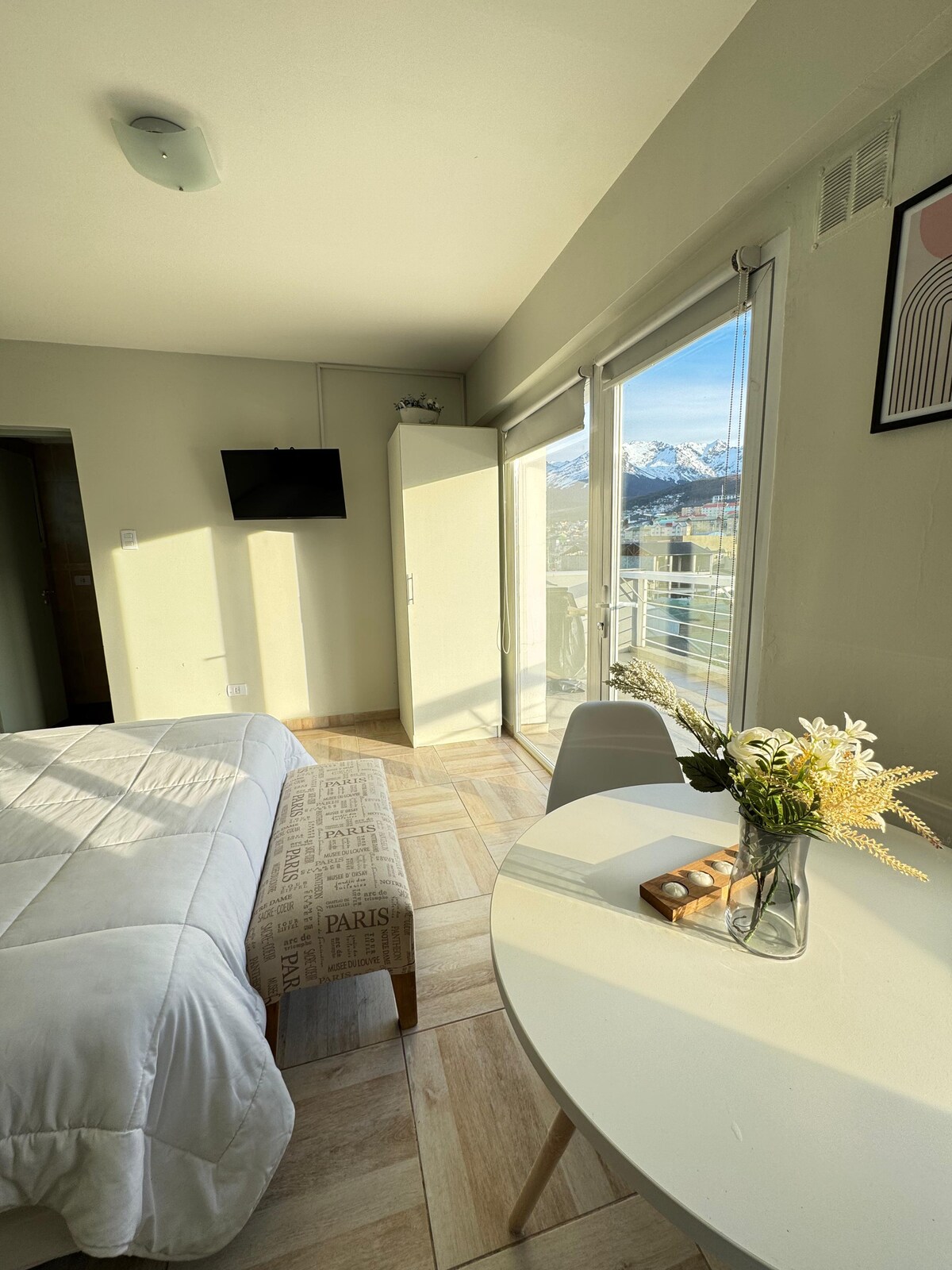Apartment para sa 2 10% diskuwento sa hindi mare - refund na presyo at mga promo ayon sa kalendaryo Ang masisiyahan ka Terrace kung saan matatanaw ang Mountain Cord at Beagle Channel mula sa balkonahe at terrace Kasama ang pribadong garahe Wi - Fi. Personal na numerong lock Mga detalyeng nagdaragdag Mga komplimentaryong item sa kalinisan Maligayang pagdating sa kape/tsaa/yerba mate/mineral na tubig Mga libro ng mga may - akda, mapa at card ng Fuguino