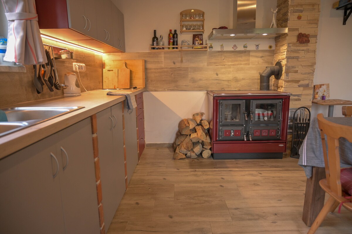 Matatagpuan ang apartment sa hardin malapit sa bahay ng mga may - ari, na may kasamang restawran na may mahusay na lutuin. Kumpleto sa gamit ang apt. kabilang ang kusina, sofa bed, double bed, at nakataas na sahig na gawa sa kahoy (1 at 1/2 kama) . Sa mas malamig at mga buwan ng taglamig, ang gusali ay pinainit ng isang kalan ng kahoy, na magagamit sa tabi mismo ng gusali. Ang bayan ng Unhošů ay matatagpuan 15 km mula sa Prague, maaari mo ring gamitin ang direktang bus o mga linya ng tren ng pampublikong transportasyon. Aabutin nang 35 minuto ang biyahe.