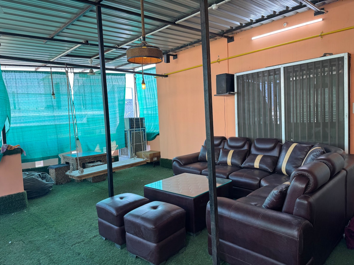 You get a private rooftop living room with kitchen, 2 rooms, 2 washrooms, fridge, geyser, Wi-Fi, AC & all amenities. Rules: 1. Smoke only on terrace. Burns on sofa/bed ₹2500 2. Spitting on walls/floor ₹2000 3. No shouting on terrace; mess = immediate checkout 4. Food/vomit spill on bed, pillow, duvet, sofa ₹1000 each 5. Vomit on floor/washroom ₹500 6. Checkout: 10:00 AM Amenities chargeable: Bonfire -1000/- with materials Barebque -1500/- with materials
