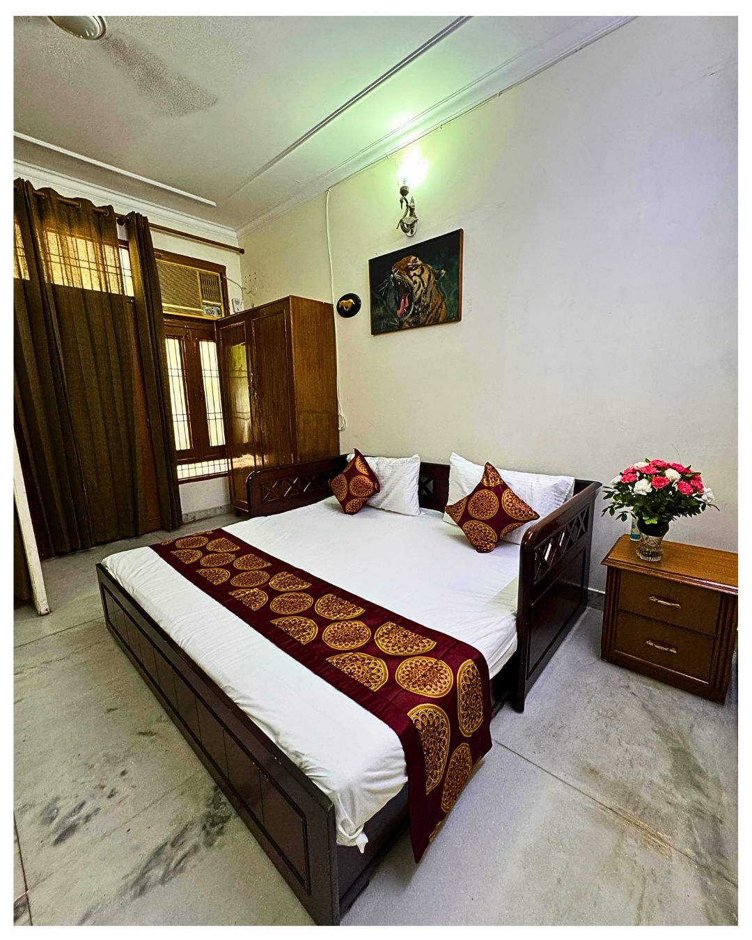 Located in Rajinder Nagar, near Karol Bagh, this comfy AC room offers a spacious bed, attached bathroom (24hrs hot water), kitchenette (Induction cooktop) & workspace desk (high speed wifi). It has unbeatable location advantage, just a walk from Shankar Rd, near top hospitals like Gangaram, BLK, perfect for people on work/travel/patients & caregivers. It also has a cool sit-out at the entrance where you can unwind. Calm, green surroundings. Quick access to shops, restaurants, and healthcare.