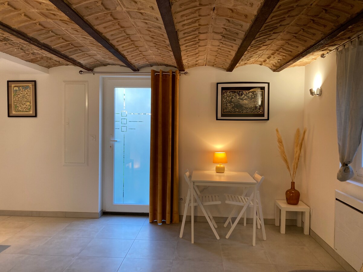 2 kuwarto apartment ng 30 m2 sa ground floor: - silid - tulugan na may 1 kama 140 x 200 cm - living area na nilagyan ng sofa bed - banyong may shower, toilet - kusina na nilagyan ng dishwasher, oven, microwave, takure, coffee maker ... Sa loob ng isang bahay ng ilang tahimik na apartment sa isang berdeng kapaligiran. Mga sapin (mga higaan na gagawin ng bisita ) at mga tuwalya na kasama sa presyo ng paglilinis.