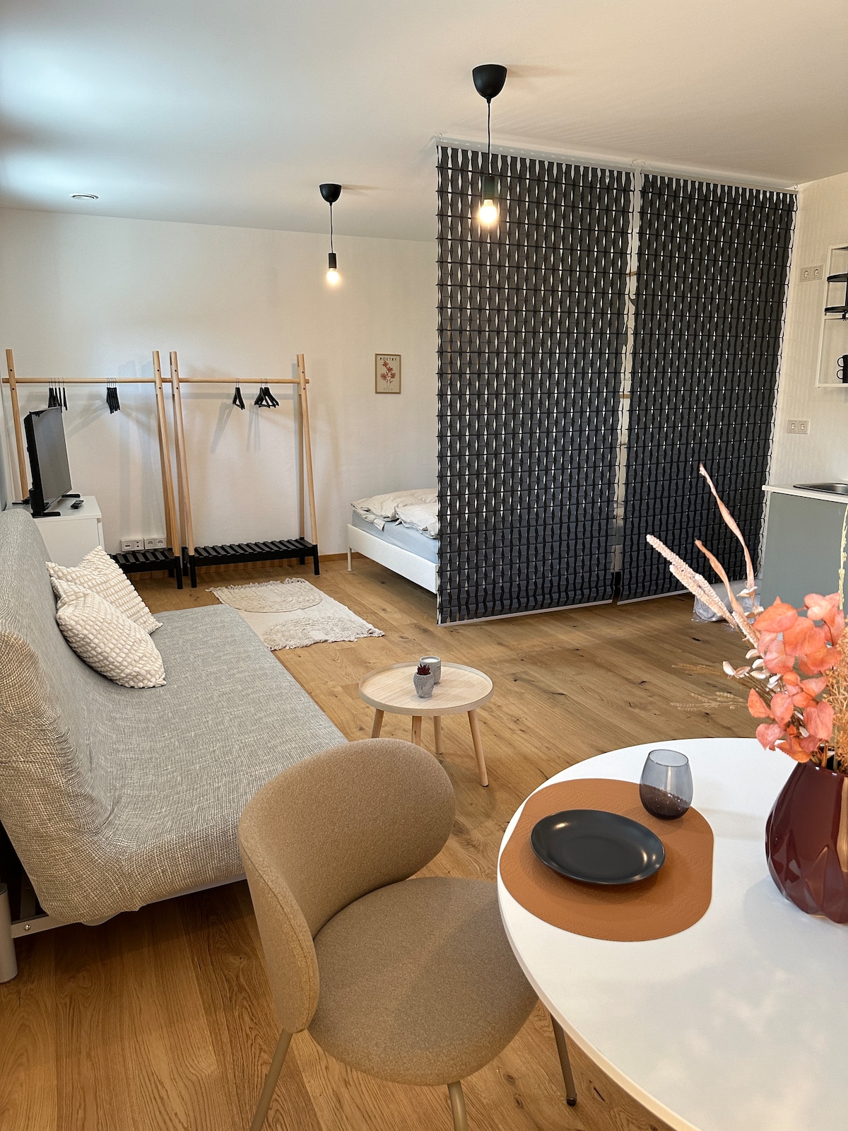 Unser stilvoll eingerichtetes Souterrain-Apartment ist die perfekte Unterkunft für zwei Personen. Auf kleinem Raum findest du alles, was du für eine erholsame Auszeit brauchst: ein gemütliches Doppelbett, eine kleine Küchenzeile sowie einen Essbereich. Die Wohnung ist modern und liebevoll gestaltet, ideal für Paare oder Alleinreisende, die Ruhe und Komfort suchen. Hier kannst du entspannen, abschalten und dich sofort wie zuhause fühlen.