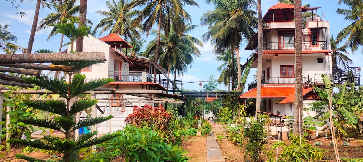 Magsaya kasama ng buong pamilya sa naka - istilong lugar na ito. Matatagpuan sa gitna ng Ramanathapuram Village na napakalapit sa sentro ng lungsod, masisiyahan ka sa magandang kasiyahan ng kapaligiran ng nayon, kasama ang kasiyahan na maranasan ang kaguluhan ng lungsod , na isang kilometro lang ang layo mula sa lugar na ito! Palaging available ang paghahatid ng pagkain. Malapit na ang Malampuzha at puwede mong bisitahin ang mga sikat na templo ng Palakkad ! Ang Agraharam na may Vedapatasala ay magbibigay sa iyo ng isang natatanging karanasan!