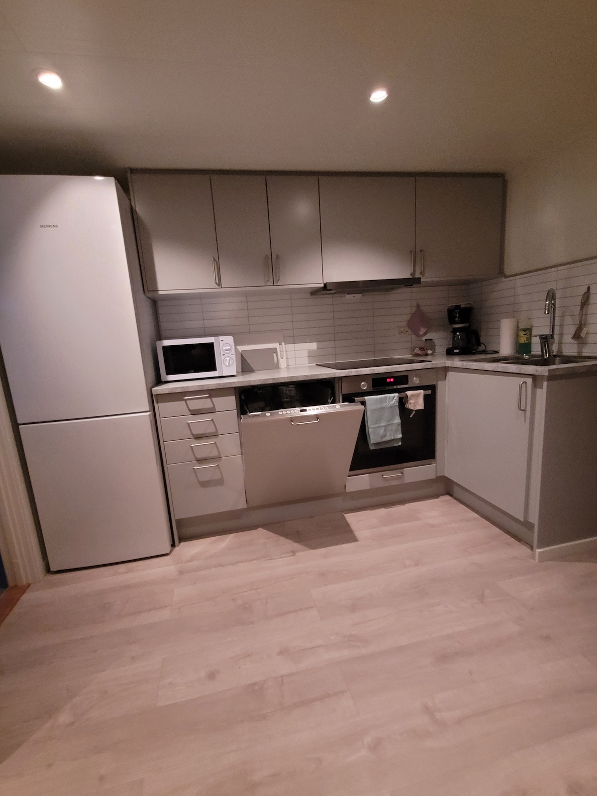Comfortable apartment in Svolvær with fireplace, free parking and wifi. Separate bedroom with queen bed, lounge area with sofa and a kitchen corner with basic utilities. Modern bathroom with heated floor, toilet and shower. The apartment is easy access on ground floor. The building is old and you will hear other people and kids living in the house, mainly footsteps, therefore it's important that quiet time from 22 til 07 is kept.
