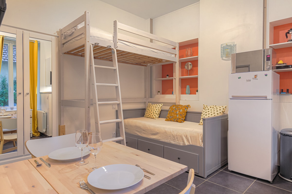 Ang studio na 20 m2 ay ganap na inayos gamit ang mga de - kalidad na materyales. Maingat na inalagaan ang muwebles at pangalawa ito para matiyak ang pagkakaisa at paggalang sa kapaligiran. Binili ang sofa mula sa convertible house para matiyak ang mga de - kalidad na kaayusan sa pagtulog. Ginawa namin itong isang mapayapang daungan kung saan maganda ang pakiramdam mo sa panahon ng iyong bakasyon sa Lyon.