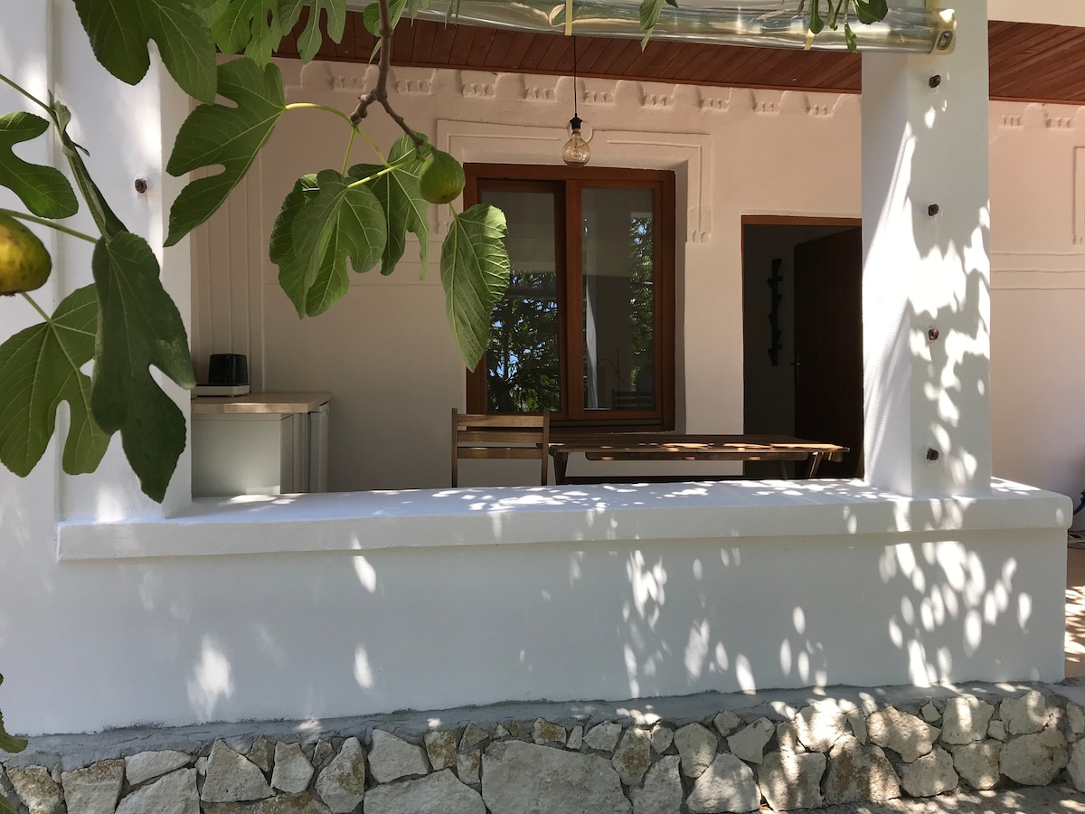 Matatagpuan sa 2 Mai sa main street, na may direktang access sa beach, ang bahay ay kaka-renovate lang. Binubuo ito ng dalawang malalaking silid-tulugan na may double bed, isang mas maliit na silid-tulugan para sa mga bata, dalawang banyo, kusina (induction cooker, toaster, pinggan, atbp.), terrace at bakuran. Ang mga pader ay gawa sa bato, na nagiging dahilan ng kaaya-ayang temperatura sa anumang oras ng araw. Ang bahay na ito ay bahagi ng isang mas malaking ari-arian na may dalawa pang katulad na espasyo. Perpekto para sa mga pamilya.