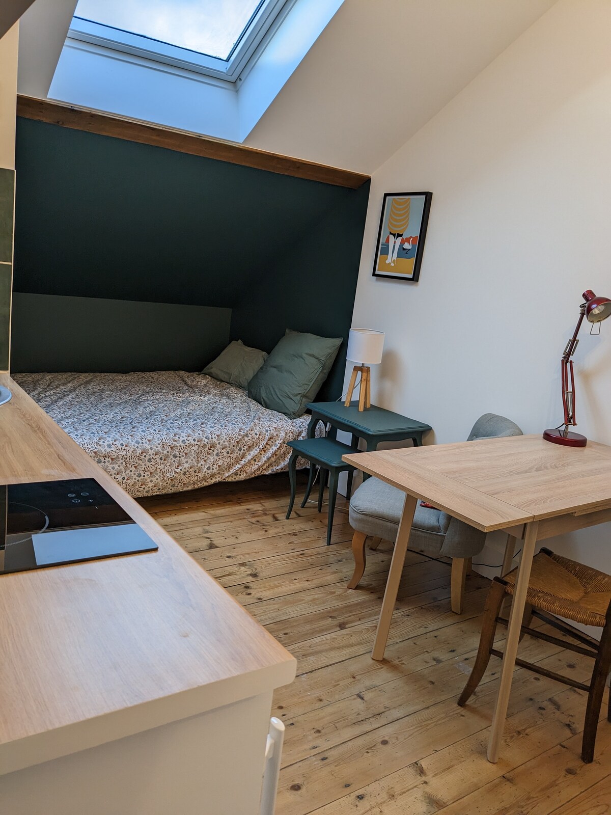 Maligayang pagdating sa Dijon, nag - aalok ako para sa upa ng isang renovated studio/T1 (26m2) sa isang tahimik na kalye, habang malapit sa istasyon ng tren, sentro ng lungsod, lungsod ng gastronomy at botanical garden ng arquebuse. Makakakita ka ng kusina - sala - silid - kainan; isang tulugan na nakahiwalay sa dalawang sliding door at banyong en suite na may shower. Mainam ito para sa 2 tao pero puwede itong tumanggap ng hanggang 4 na higaan na may sofa bed sa sala bilang karagdagan.