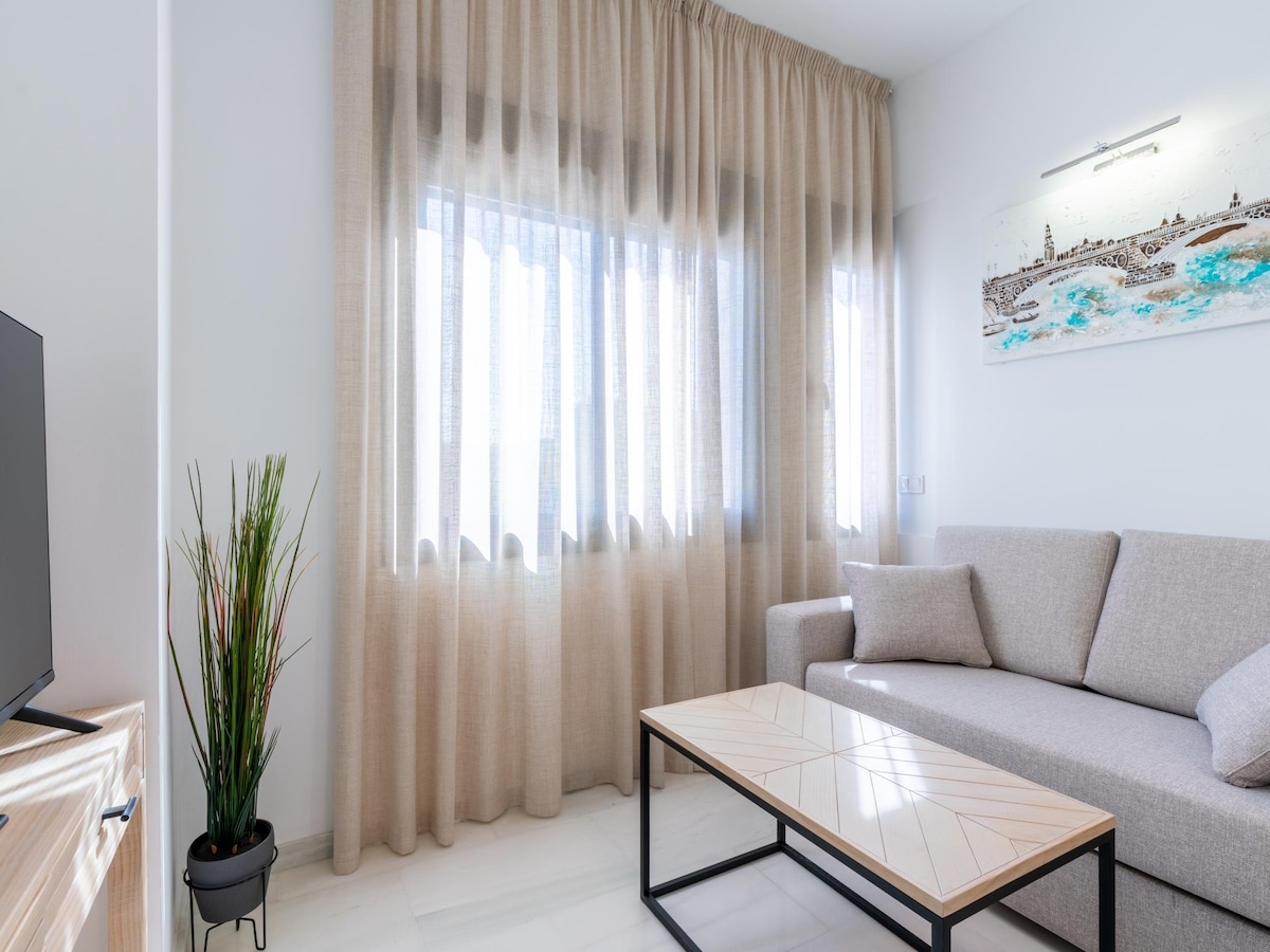 Modernong apartment sa Seville. Mayroon itong malaking banyo, kumpletong kusina, at lahat ng kinakailangang detalye para sa trabaho o turismo. Matatagpuan ilang minuto lang mula sa Seville Airport at sa Palacio de Congresos (FIBES), nag - aalok ang property na ito ng magagandang koneksyon sa bus papunta sa makasaysayang sentro ng Seville, na nagpapahintulot sa iyo na makapaglibot nang walang kotse. Mainam para sa mga propesyonal, turista, o mag - asawa na gustong masiyahan sa Seville.