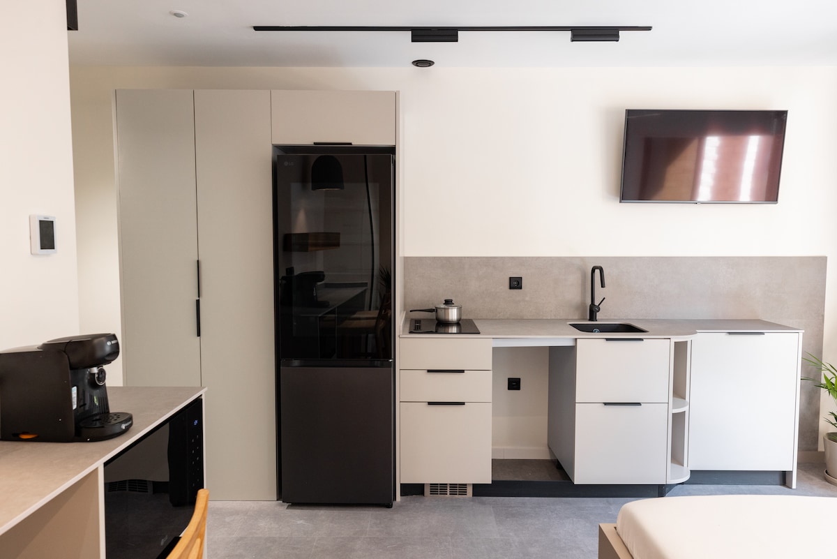 Kaibig - ibig na tuluyan na parang cottage sa isang urban na nakaharap sa penthouse apartment sa timog. Napaka - mahangin na may maraming natural na liwanag. Maaliwalas na terrace para magbabad sa ilalim ng araw at, sa gabi, magpahinga gamit ang isang baso ng alak. Isang silid - tulugan na may banyong en suite. Kaakit - akit na dekorasyon at kusinang kumpleto sa kagamitan. Ang living room na may TV at Netflix, Bluetooth speaker at Wi - Fi ay gagawin itong isang bahay na malayo sa bahay. Bumibisita man para sa kultura, pagkain, isport o pagbibiyahe lang, magandang puntahan ito!