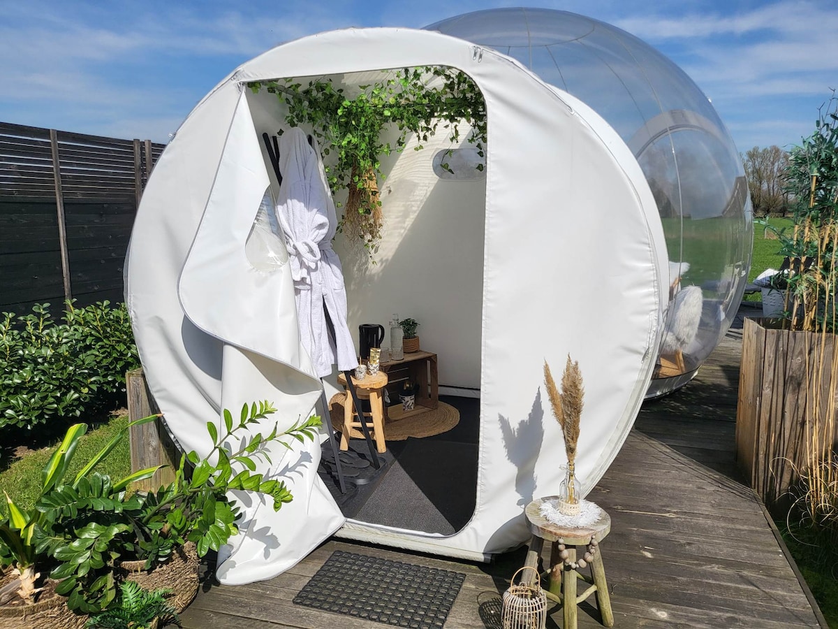 Isipin ang paggastos ng isang magdamag sa ilalim ng mga bituin, sa isang transparent na bubble na nagbibigay - daan sa iyo upang humanga sa karangyaan ng mabituing kalangitan habang tinatangkilik ang luho ng isang mahusay na hinirang na silid. Ang aming transparent na bubble ay isang tunay na imbitasyon upang makapagpahinga at magtaka, na nag - aalok sa iyo ng isang malalawak na tanawin ng nakapalibot na lugar. Tangkilikin ang mga nakakarelaks na sandali sa aming pribadong terrace, kung saan naghihintay sa iyo ang isang panlabas na hot tub upang mag - alok sa iyo ng isang ganap na nakakarelaks na sandali.