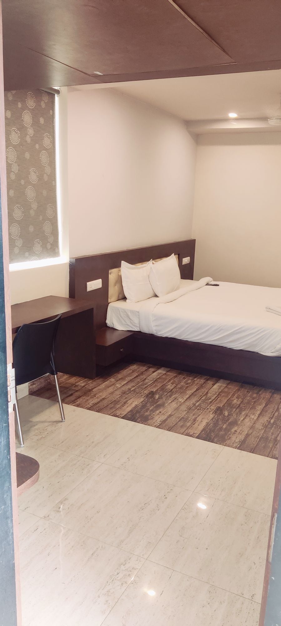 Ang Om Square, isang moderno at naka - istilong studio na matatagpuan sa gitna ng lungsod, isang bato lang ang layo mula sa A plus Convention Hall at Lalita Jewelry malapit sa Benz Circle. Ito ay isang mahusay na dinisenyo na living area, pinalamutian nang mainam upang lumikha ng komportable at kaaya - ayang ambiance. Nagtatampok ito ng nakahiwalay na dining area kung saan puwede kang kumain. Nilagyan ang compact kitchen ng gas stove at mga pangunahing kagamitan. Kasama rin ang Whirlpool refrigerator, microwave, hot water kettle, at RO Water.