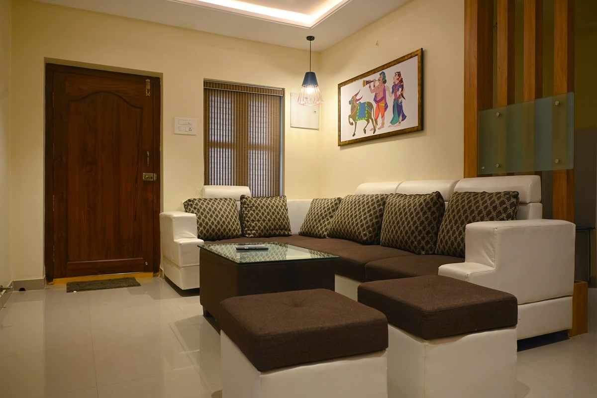 Homely 3BHK mula sa Saroo_ homes. Talunin ang trapiko sa pamamagitan ng pamumuhay sa labas ng Vijayawada. Matatagpuan ang property sa NH 5 (Kolkata - Chennai highway) at 10 minutong biyahe lang ang layo nito mula sa Vijayawada City. Magrelaks kasama ng buong pamilya sa mapayapang lugar na matutuluyan na ito. Ang flat ay ganap na nilagyan ng ACs sa lahat ng mga kuwarto, 2 geysers sa 2 banyo, 3 Queen bed, 1 smart TV, 5 seater sofa, dining table, upuan, fully functional kitchen na may refrigerator, microwave, rice cooker, kagamitan atbp.