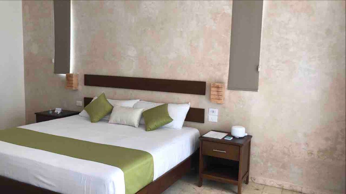 Kami ay isang Colonial Style Decorage Hosting na may mga touch ng Rehiyon, na matatagpuan 10 minuto lamang mula sa pinakamagagandang Cenotes sa Yucatan Peninsula at 30 min mula sa world wonder Chichen Itza. Ipaparamdam namin sa iyo na tanggap ka namin. Mayroon kaming serbisyo sa Restawran para sa Almusal, Tanghalian at Hapunan na may masasarap at iba 't ibang putahe ng panrehiyon at internasyonal na lutuin. Mayroon kaming serbisyo ng Bar upang tamasahin ang iyong mga paboritong inumin sa ginhawa ng aming mga pasilidad.