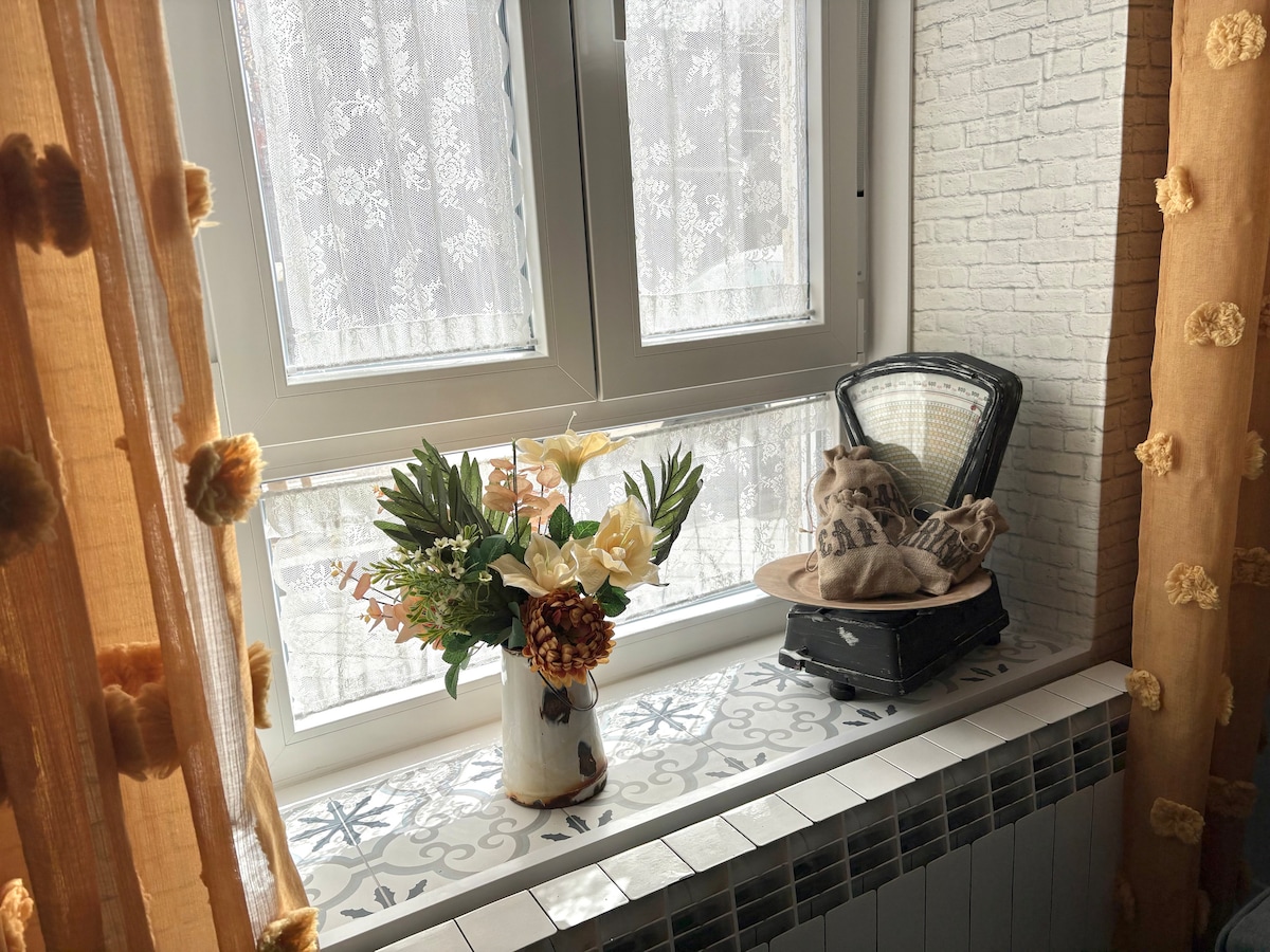 Matatagpuan sa gitna ng apartment/loft, na may Jacuzzi, de - kuryenteng fireplace at lahat ng kailangan mo para magkaroon ng kaaya - ayang pamamalagi... at kung mainip ka, maglaro sa recreational machine na napakaraming alaala ang magdadala sa iyo (Tetris,Super Pang,Street Fighters) at hanggang 16,000 pang laro. Ilang minuto mula sa Plaza Mayor, Teatro Calderón at makasaysayang lugar. Malapit sa mga bar kung saan masisiyahan ka sa masasarap na pagkain. Sa pamamagitan ng paraan, ang almusal, bagama 't mapagpakumbaba, tulad ng lahat ng bagay sa pamamalaging ito, ay nag - iisa 😜