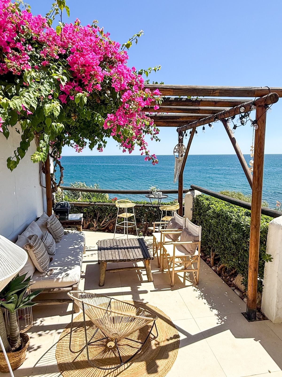 Kung gusto mo ng pinakamagandang tanawin ng dagat sa Estepona, maligayang pagdating. Tunay na pamumuhay sa tabing‑dagat, na may pribadong direktang access sa dagat at halos 60 m² na terrace na idinisenyo para makapagrelaks at makapagsaya. Almusal na may tanawin ng Africa at Gibraltar, mahabang barbecue, siesta sa lilim, at paglubog ng araw habang pinakikinggan ang alon. Maluluwag na interior, palaging natural na liwanag, at komportable at pribadong layout na may de‑kuryenteng fireplace. Mainam para sa mga pamilya, mag - asawa o grupo ng mga kaibigan. Dagat, kalawakan, at katahimikan.