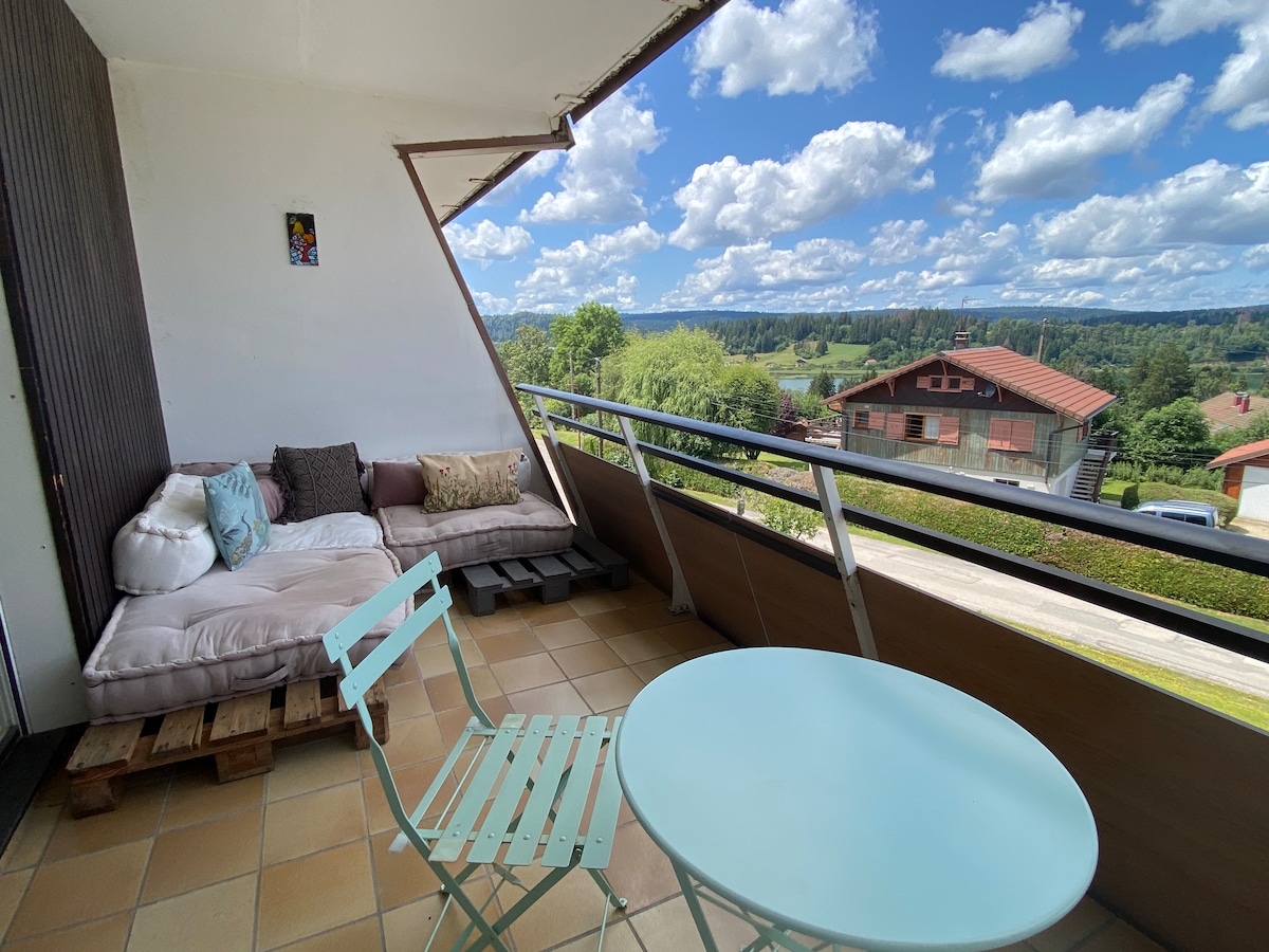 Ang aming maliit na apartment na maaaring tumanggap ng 4 na tao, ay matatagpuan sa unang palapag ng aming chalet, ito ay ganap na independiyenteng, nakaharap sa timog. Ang lokasyon nito at ang natatanging tanawin nito sa Doubs, ay magbibigay - daan sa iyo na magkaroon ng mapayapang pamamalagi, tahimik at malapit sa kalikasan. Mainam ang lokalidad nito para sa pagbisita sa rehiyon ng Haut - Doubs at sa bundok ng Jura. Matatagpuan ito malapit sa mga ski resort, lawa, at lahat ng amenidad. Sports o nakakarelaks na pista opisyal...Ikaw ang bahala!