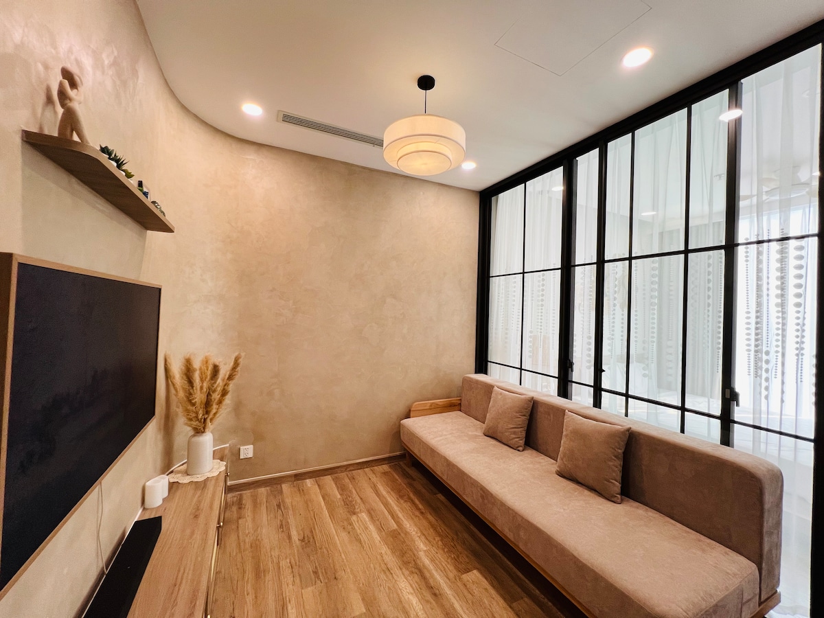 Sol Forest building was designed by the renowned international architecture firm Dewan Architects + Engineers (Dubai), famous for its Vertical Forest concept. The design creates a unique green space with elevated tropical gardens, bringing a harmonious balance between architecture and nature. The apartment is located on the 30th floor, overlooking the Vạn Tuế residential area, with open and refreshing views of the Haven and Vạn Tuế swimming pools. The homestay belongs to Cui Homestay Ecopark.