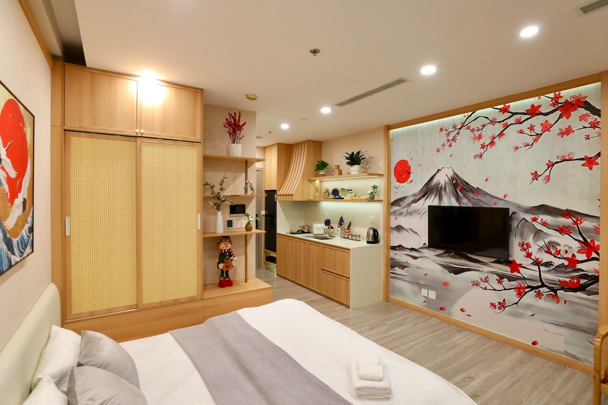 Matatagpuan ang 3 - bedroom na apartment na may kumpletong kagamitan na ito sa Ecopark, Van Giang, Hung Yen, 15 km lang ang layo mula sa sentro ng Hanoi. Ang apartment ay may komportableng disenyo sa estilo ng Japandi. Matatagpuan sa gusali ng Landmark Onsen, nag - aalok ang apartment ng mga amenidad tulad ng sauna at hot mineral service (bayad). Kasama sa mga kalapit na amenidad ang mga hot spring ng Onsen, mga saltwater swimming pool at mga berdeng parke, nakakarelaks na kapaligiran. Nag - aalok ang balkonahe ng apartment ng magagandang at mapayapang tanawin ng Swan Lake. Ito ang lugar ng iyong pagpapagaling.
