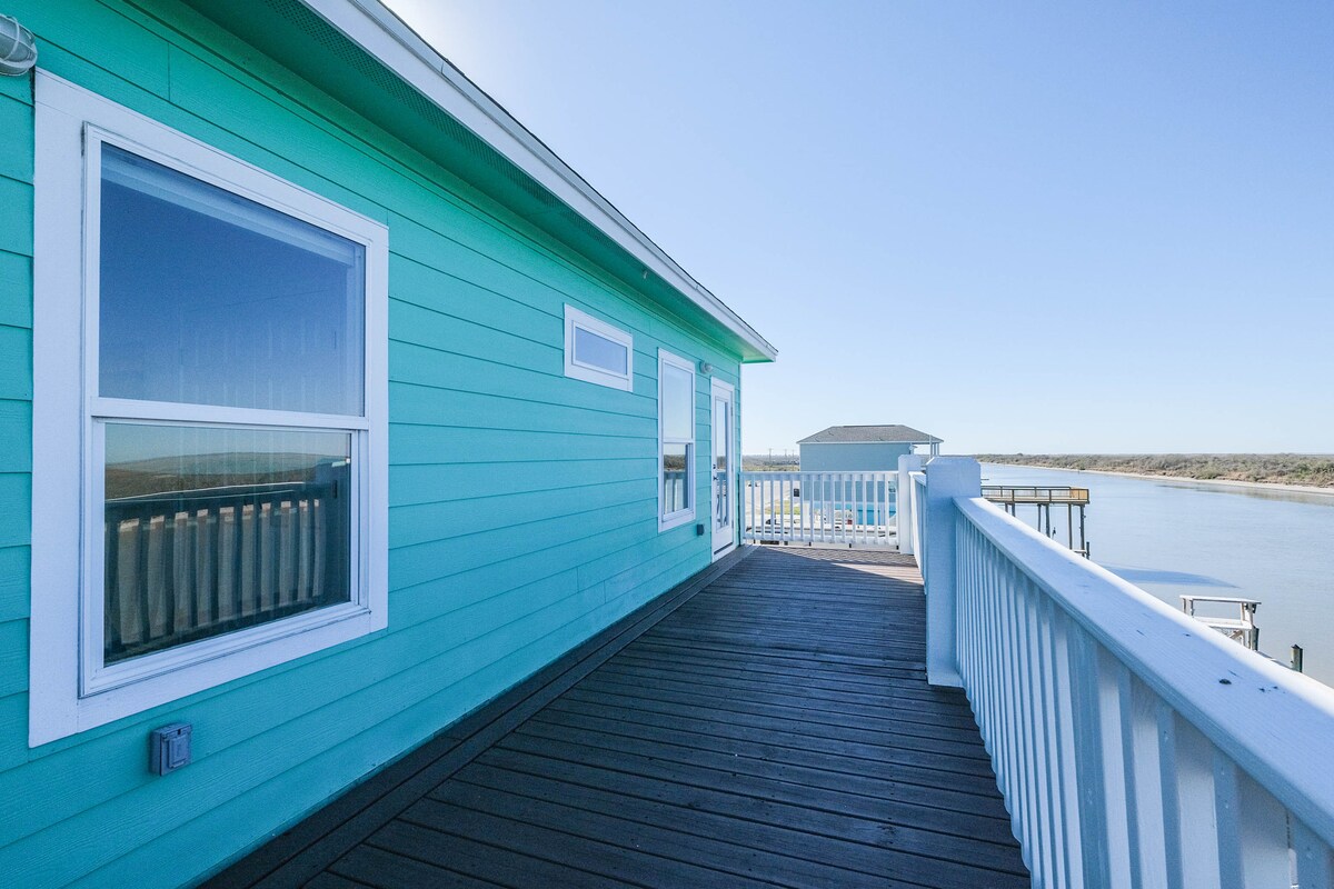Matulog nang hanggang 6 sa maganda at sobrang linis na ito, 2start}, 2.5 BA na bahay na sampung hakbang lang ang layo sa CO River at isang mabilis na 3 minutong biyahe papunta sa Matagorda Beach. Dalhin ang iyong flip flops, beach towel, at paboritong libro para magrelaks sa isa sa 2 deck...o dalhin ang iyong kagamitan sa pangingisda at humuli ng malalaking isda sa mismong pantalan. Maaari mo ring linisin ang iyong isda doon mismo at i - ihaw ang mga ito sa BBQ grill! Dalhin ang iyong bangka o kayak at itulak mula sa pantalan. Gumawa ng magagandang alaala kasama ng buong pamilya sa mabagal na bayan ng dagat!