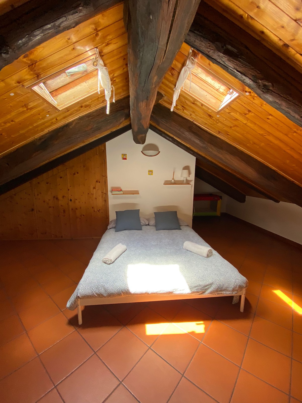 Bagong - bago, na may banyo, maliit na kusina at malaking terrace na kumpleto sa kagamitan. Maaari kang humigop ng isang baso ng alak na hinahangaan ang Mole Antonelliana (na sa gabi, iluminado, kinukuha ang iyong hininga), ang burol, ang monasteryo ng Cappuccini, ang Basilica ng Superga, ang simboryo ng Guarini , ang kampanaryo ng Duomo, ang Alps... Tahimik at estratehikong lokasyon: sa ilang minutong lakad sa Piazza Castello, Mole Antonelliana, Porta Palazzo, Quadrilatero Romano, Nuvola Lavazza, Campus Einaudi.